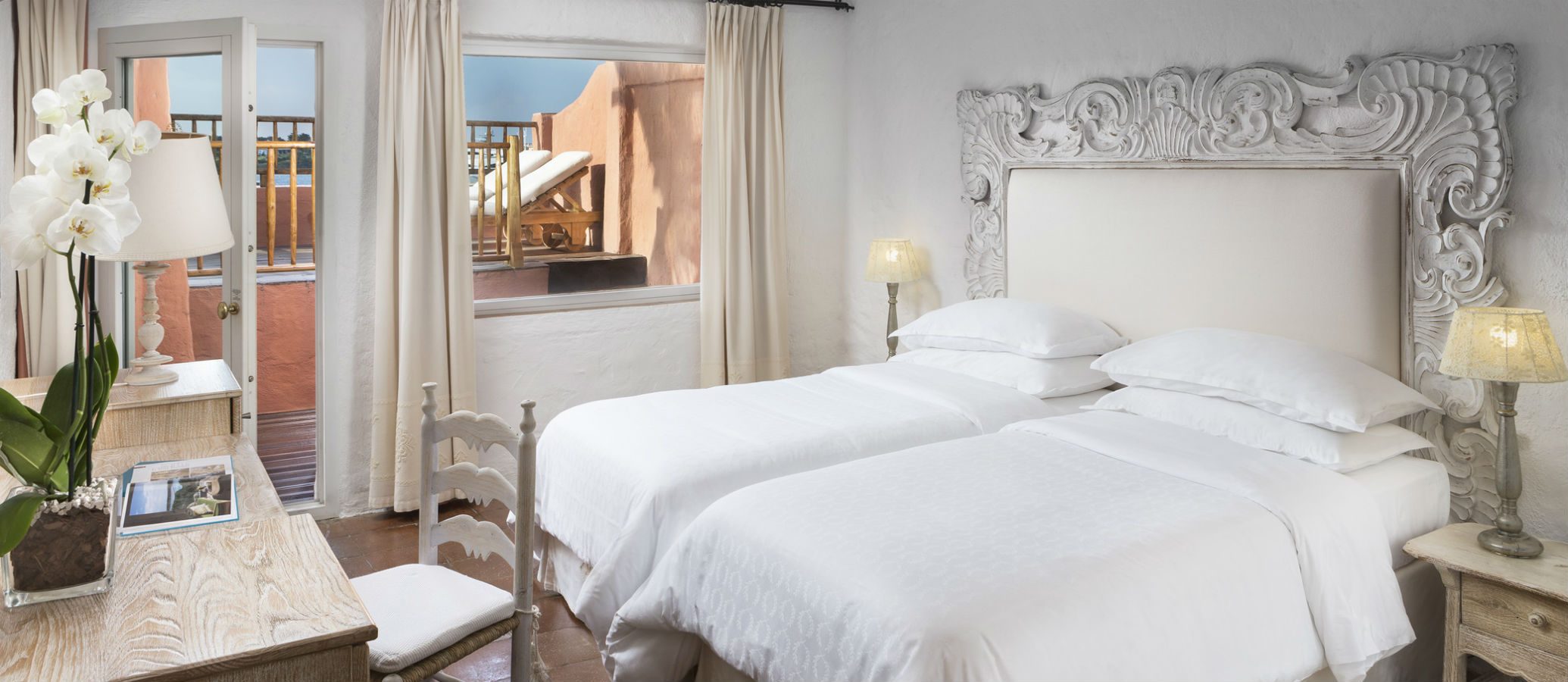 Pink stone and a Moorish Patio for a delightful hotel overlooking the Piazzetta of Porto Cervo, just a few steps from the old pier. Cervo Hotel reflects the spirit of Costa Smeralda: accommodations are charming, airy and bright; the service is impeccable, courteous and attentive.