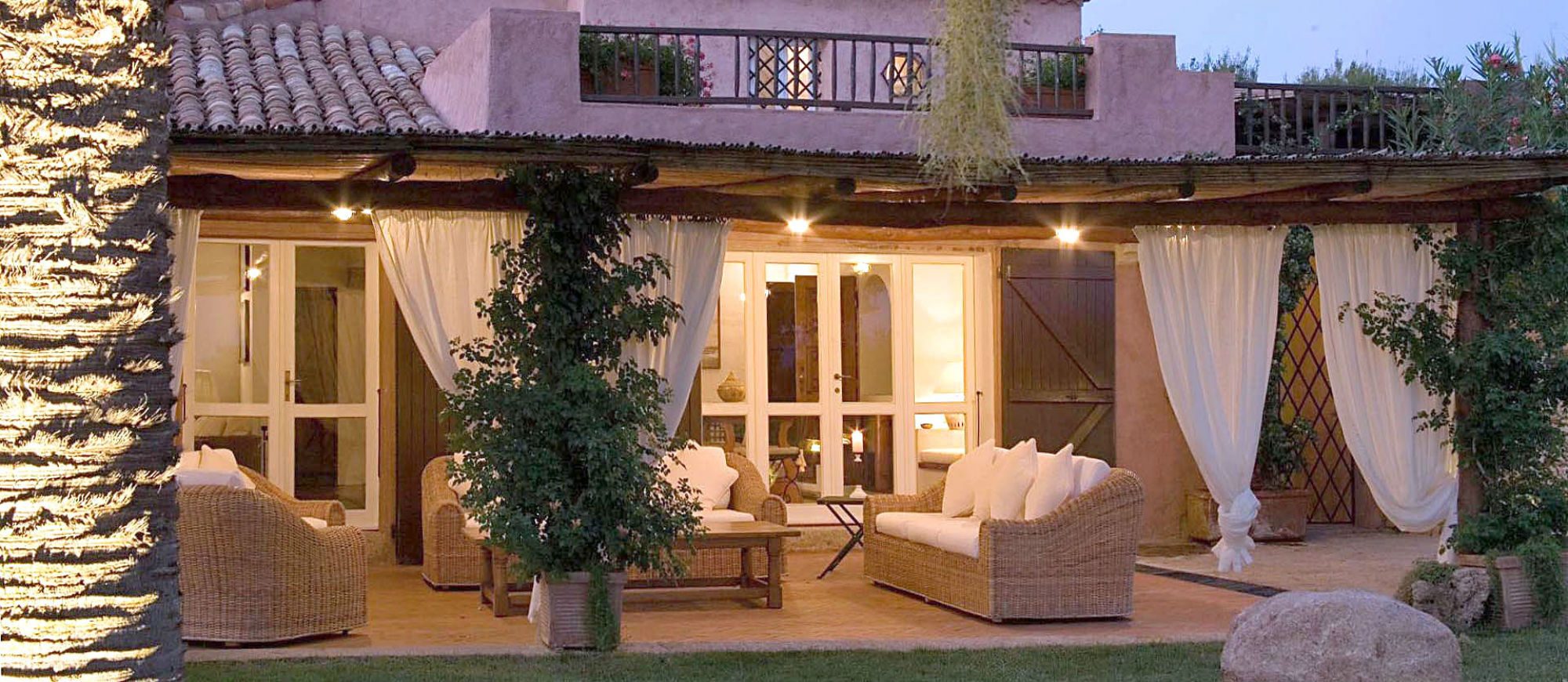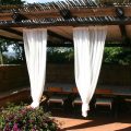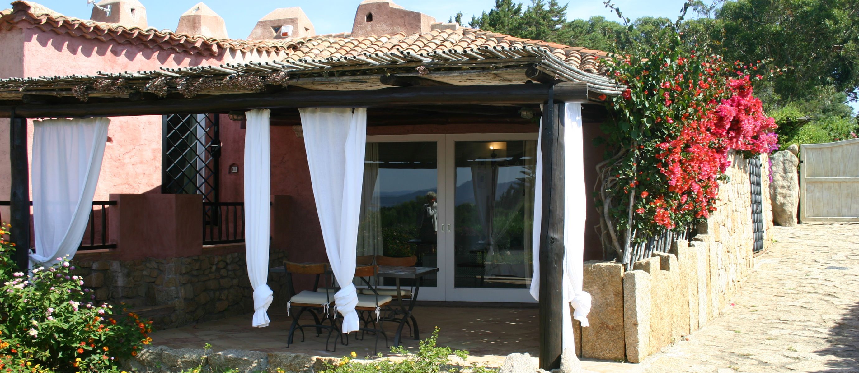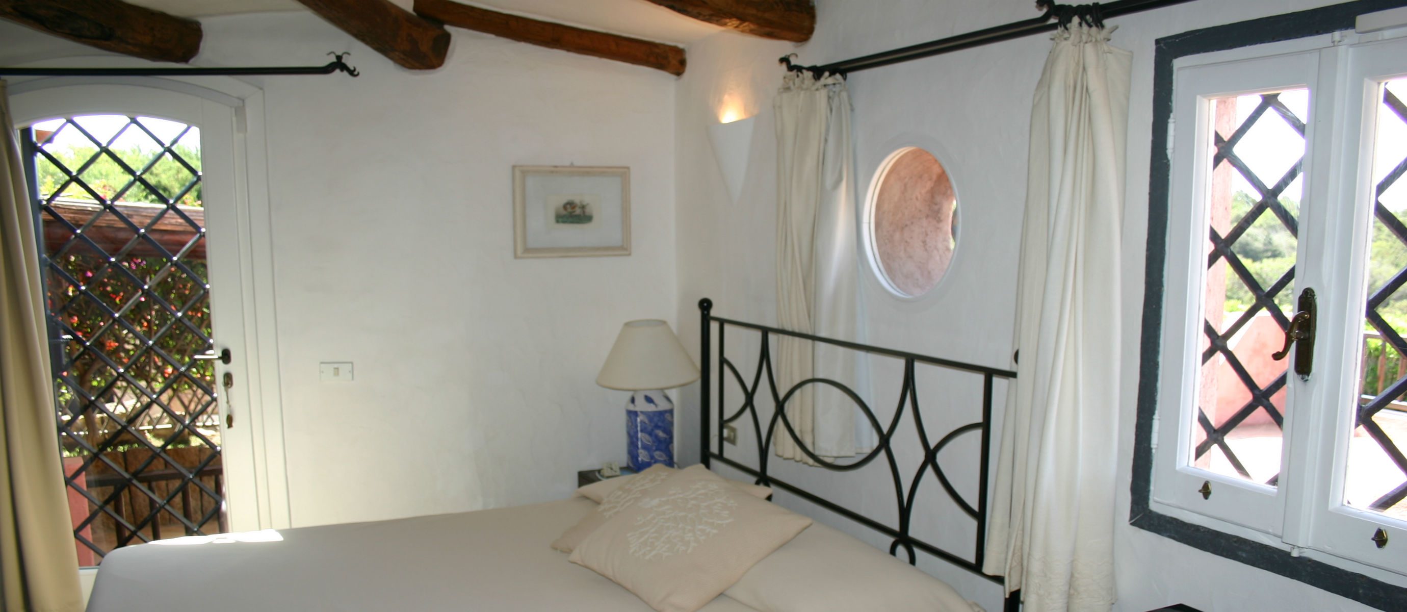 There is a large covered terrace overlooking the bay of Capriccioli, and a lovely BBQ area with covered dining terrace to the side of the house. There is a lush Mediteranean garden full of palms,oleander and bougainvillea, and a swimming pool, in a position overlooking the sea.