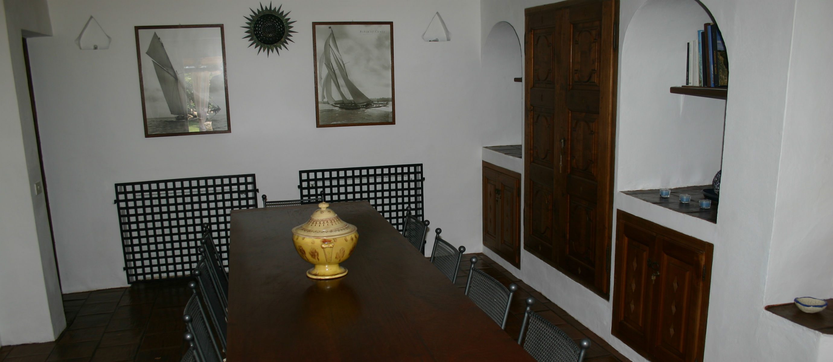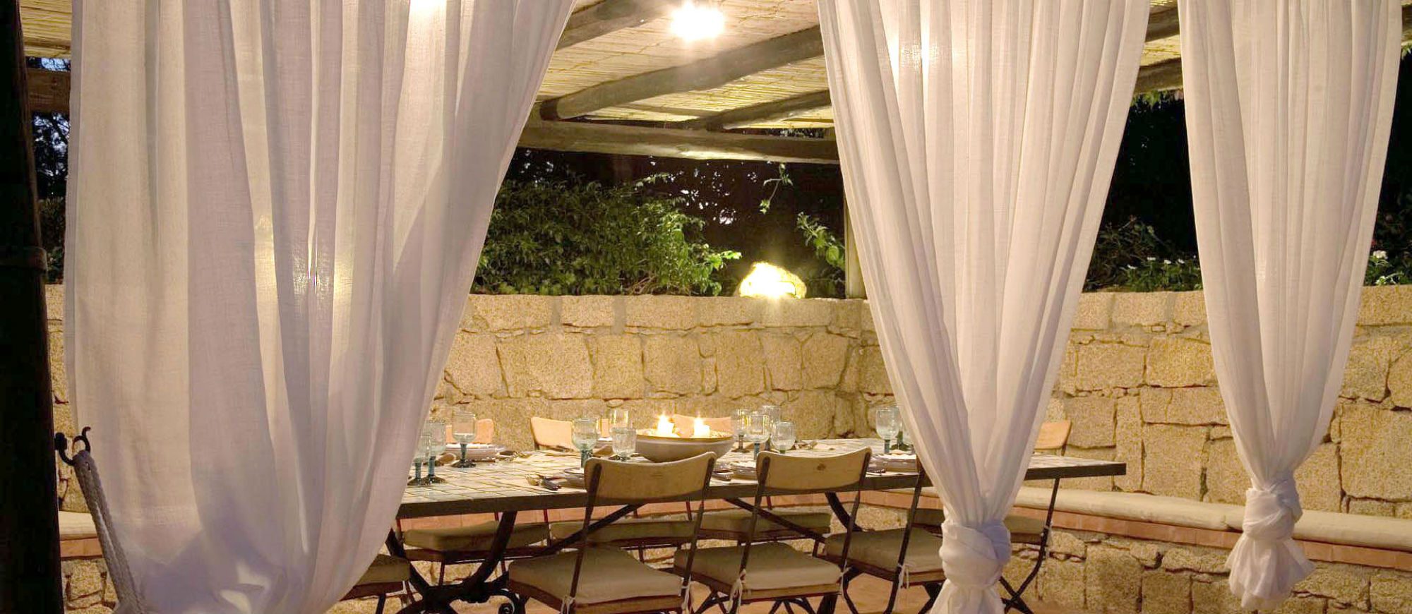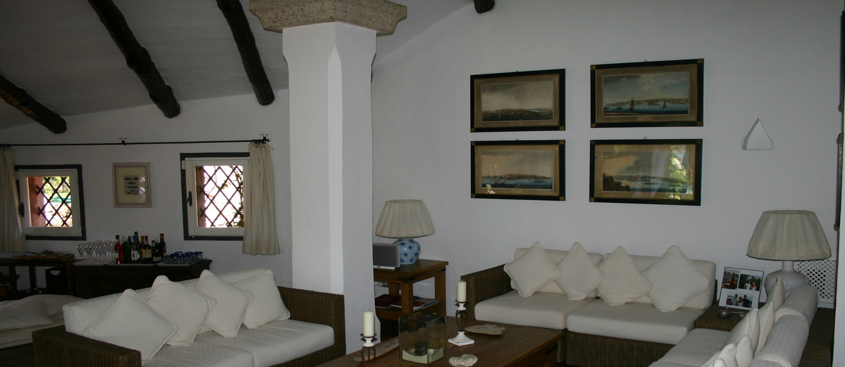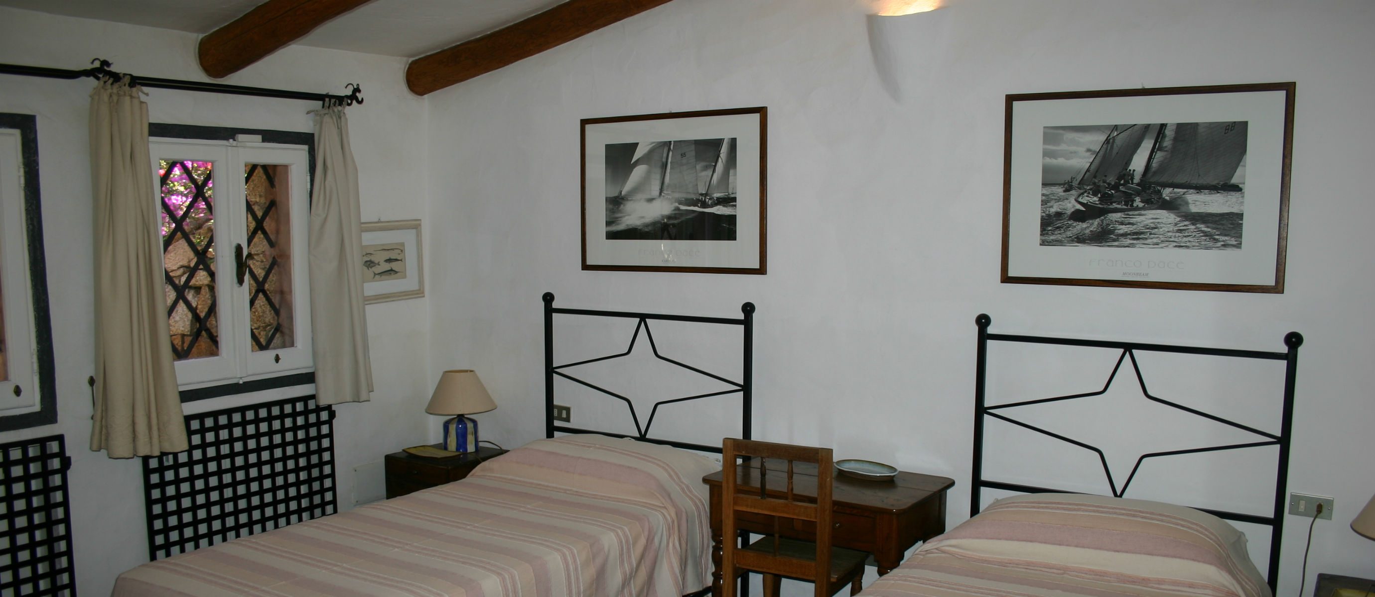 There is a large covered terrace overlooking the bay of Capriccioli, and a lovely BBQ area with covered dining terrace to the side of the house. There is a lush Mediteranean garden full of palms,oleander and bougainvillea, and a swimming pool, in a position overlooking the sea.