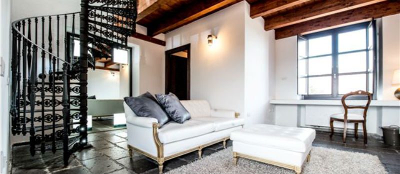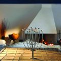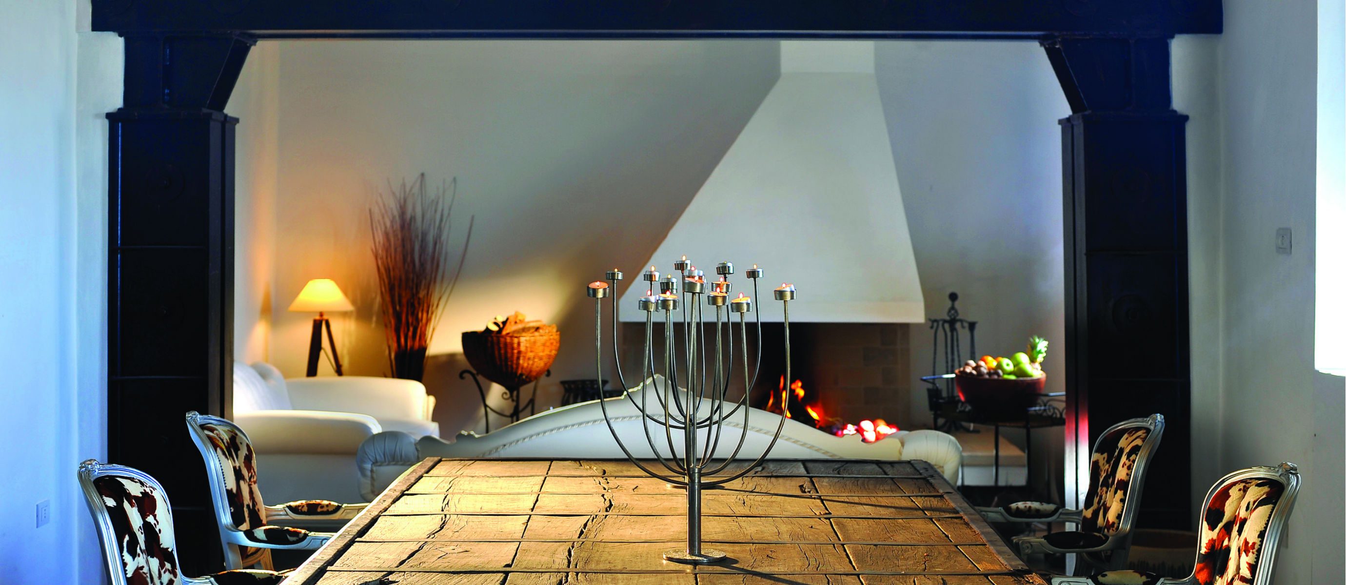 Ground Floor: Sitting room where the light colour of the stones in the vaults compliment the variety of designer objects and antique furnishings in the room. Dining rooms in the central part of the building, feature a magnificent convivial table that seats six and a large crystal table that seats ten. Huge iron beams and ceiling to floor windows have taken the place of the walls that once formed five separate rooms, creating space for different elegant lounges with comfortable white Louis XIV style sofas and a large fireplace.