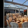 At the front of the building, overlooking the sea, a 200 m2 raised teak deck features a 14×6 m infinity swimming pool with two Jacuzzis. At both sides of the pool, the elegant white leather seating areas are the perfect place to enjoy breakfast or sip a drink at sunset. At the rear of the building, the 3000 m2 garden has a 12 m fireplace and a spacious lounge area. The central raised area features eight crystal gazebos, 16 m2 each, where guests can dine and enjoy the splendid views.