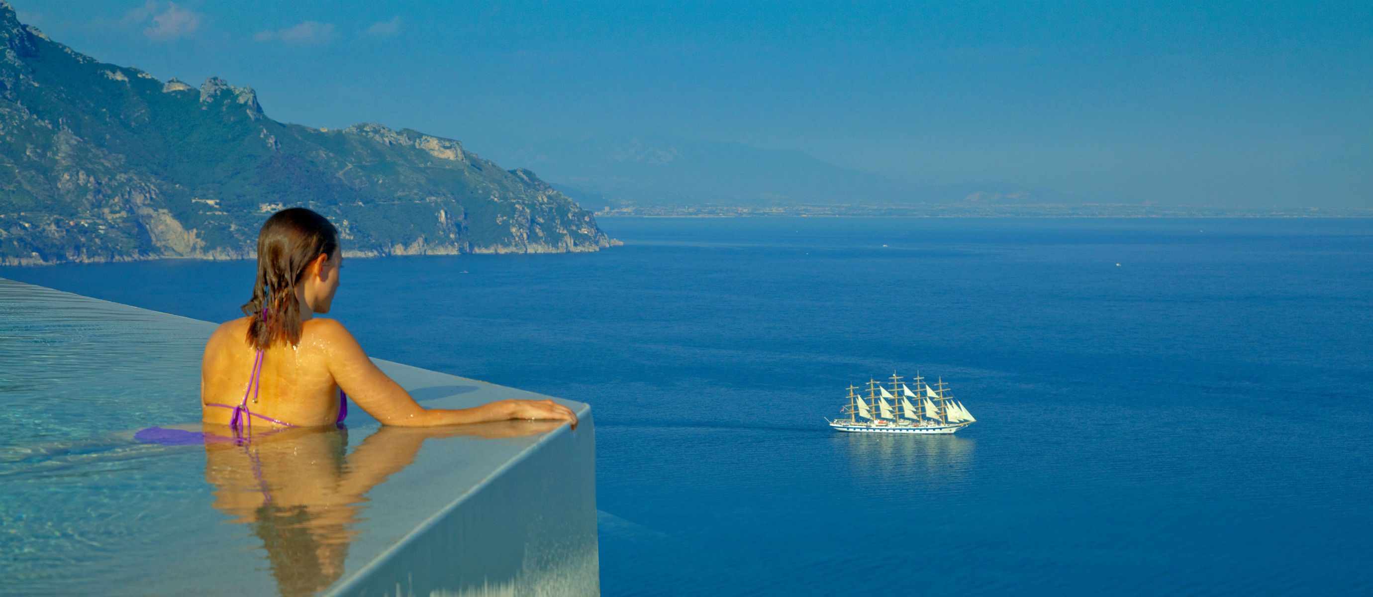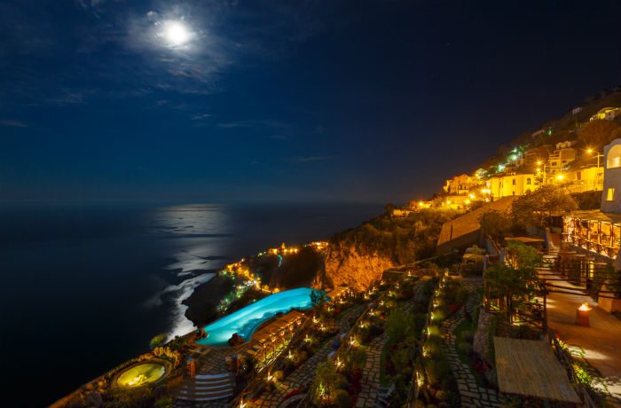 A local Neopolitan designer has collaborated with the owner to create an elegant ambiance graced by timeless Italian antiques. Every conceivable lavish amenity and comfort abound. But the focus remains the vistas. From this distinct vantage perch, the dazzling coast and Gulf of Salerno is revealed, framed through windows and balconies facing the sea. Each room still exudes the sense of tranquillity where a nun once stayed—a totally private and intimate retreat bathed in the angelic sunlight of the Amalfi Coast.