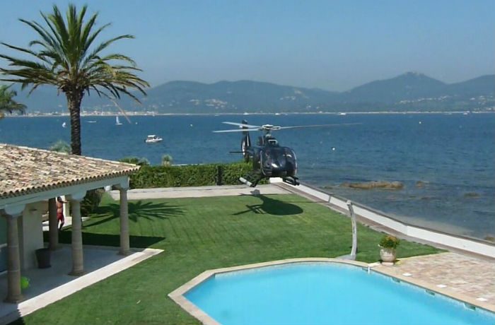 Facilities include helipad, gym, large BBQ and boules court. Parking and garages available for several cars.