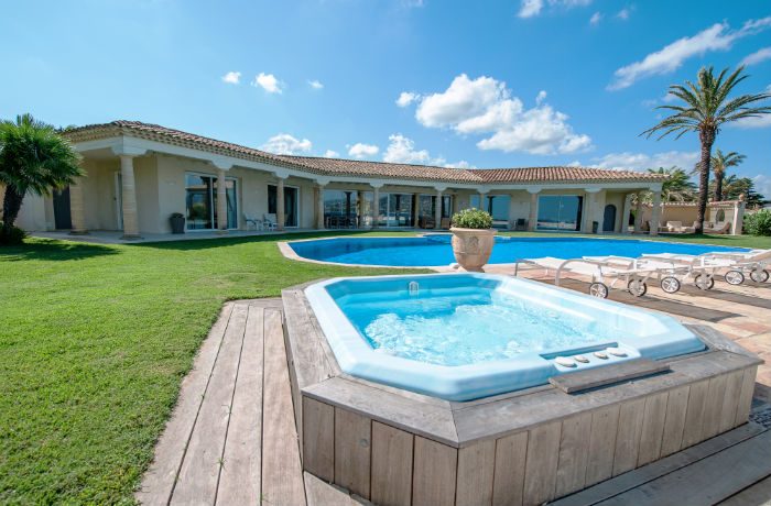 The pool has several levels and has a direct view over the sea. The pool is heated and is equipped with ecological saltwater system as opposed to the traditional chlorine system. The pool is also equipped with jetstreams and massage jets. Separate Jacuzzi.
