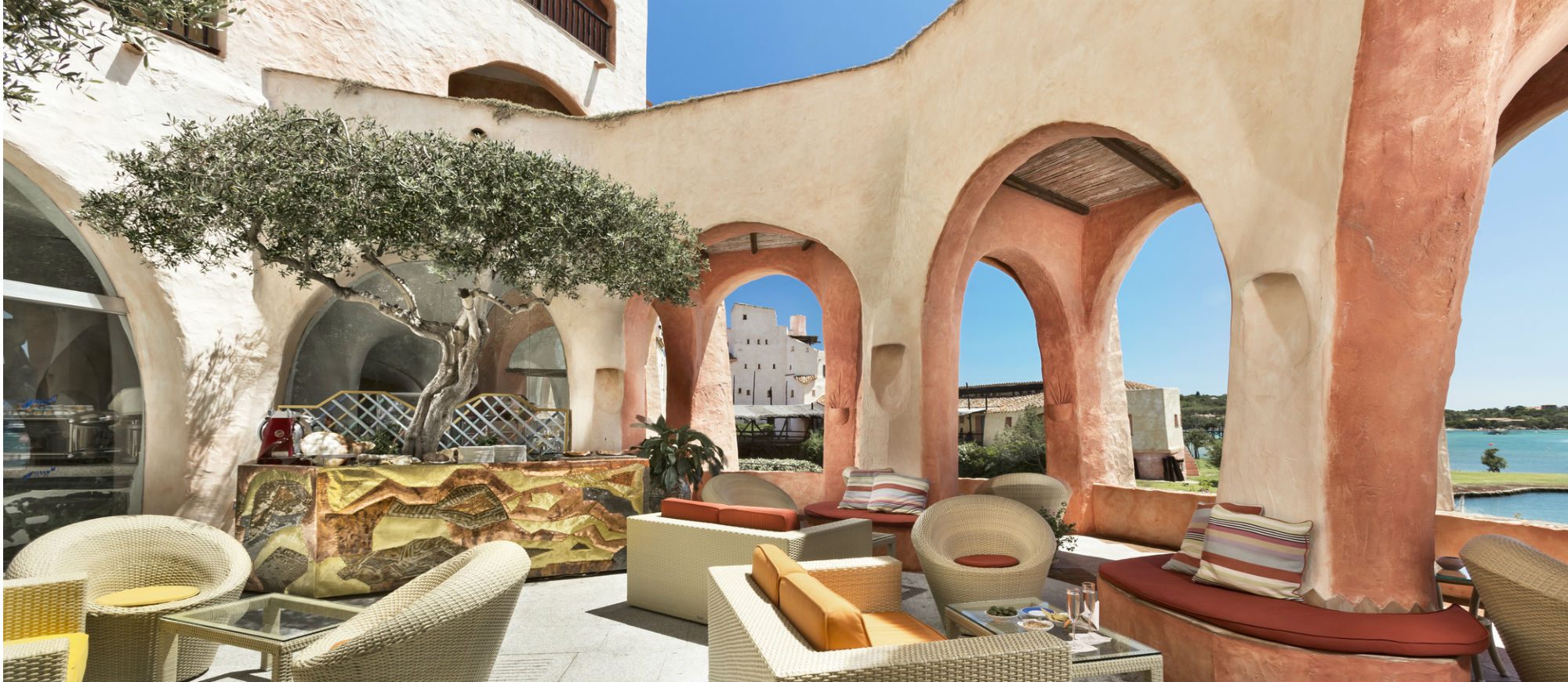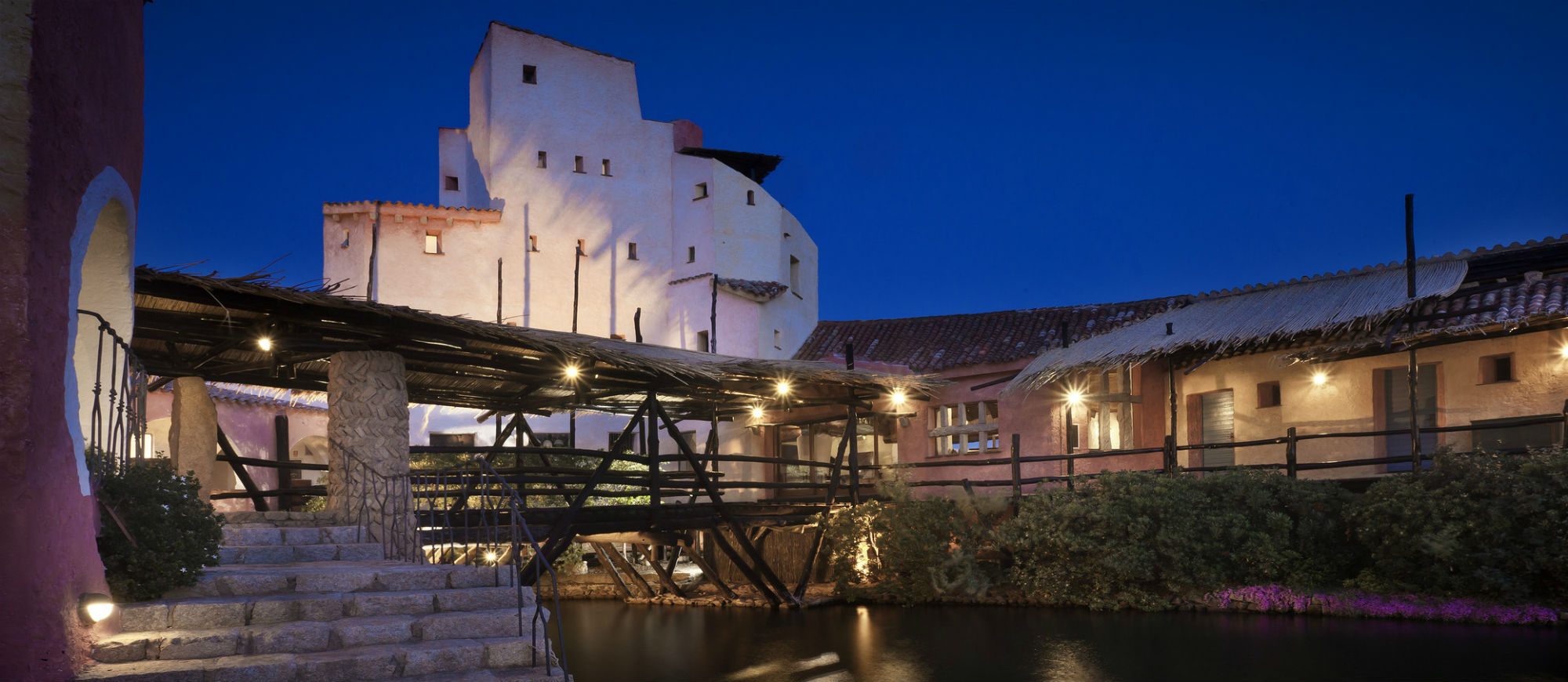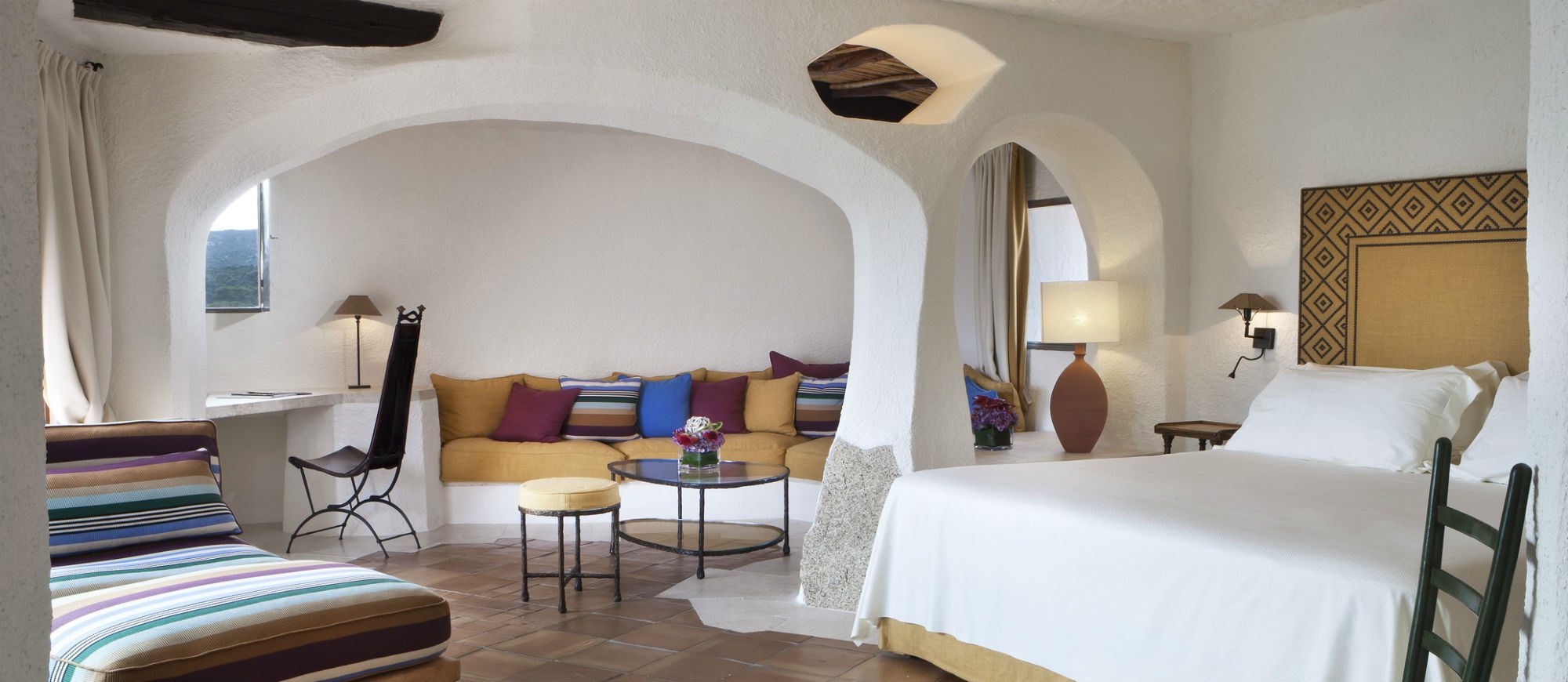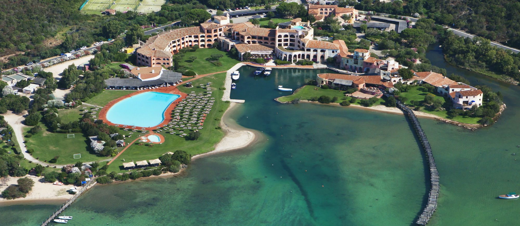 Lying on the most strikingly romantic stretch of the Costa Smeralda, the hotel resembles a charming fishing village, with its picturesque Sardinian houses and landing stage jutting out into a sea of translucent turquoise, emerald green and deepest azure.