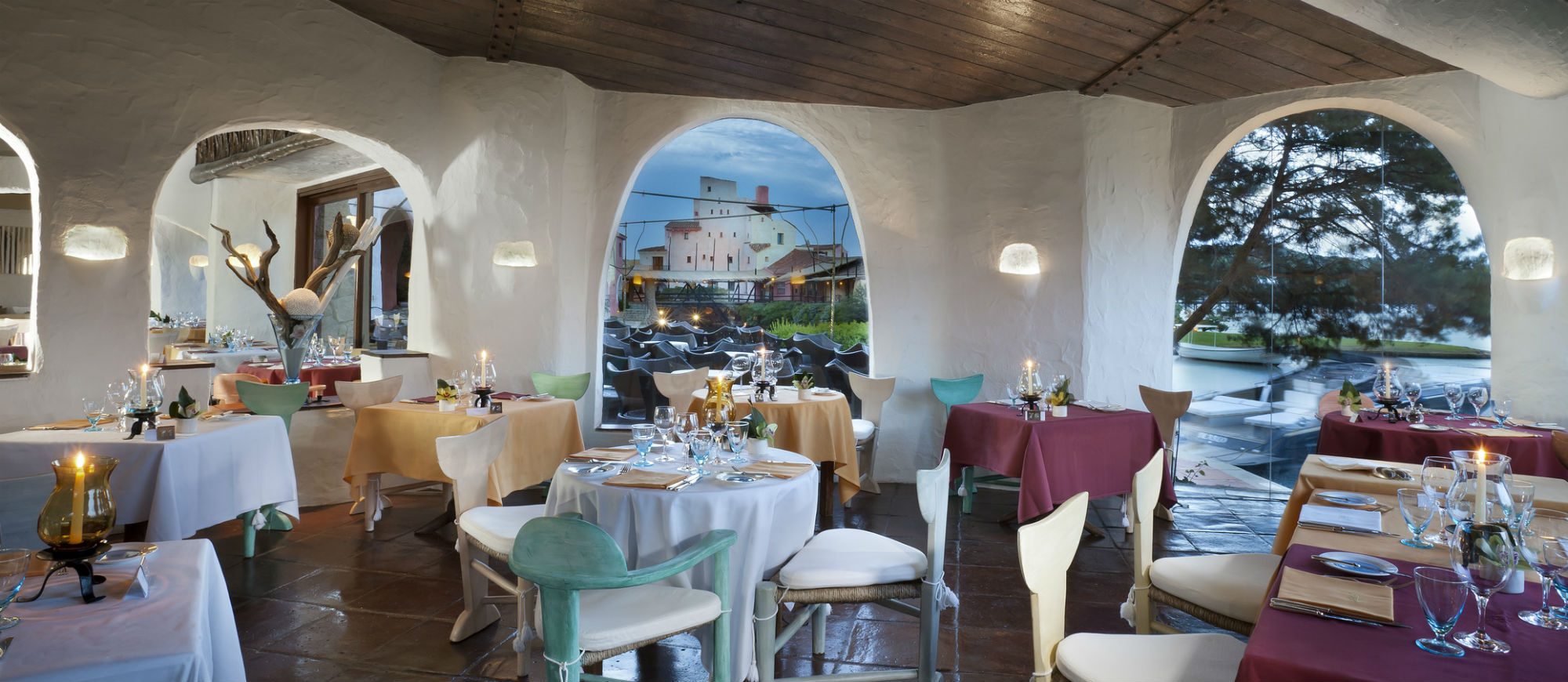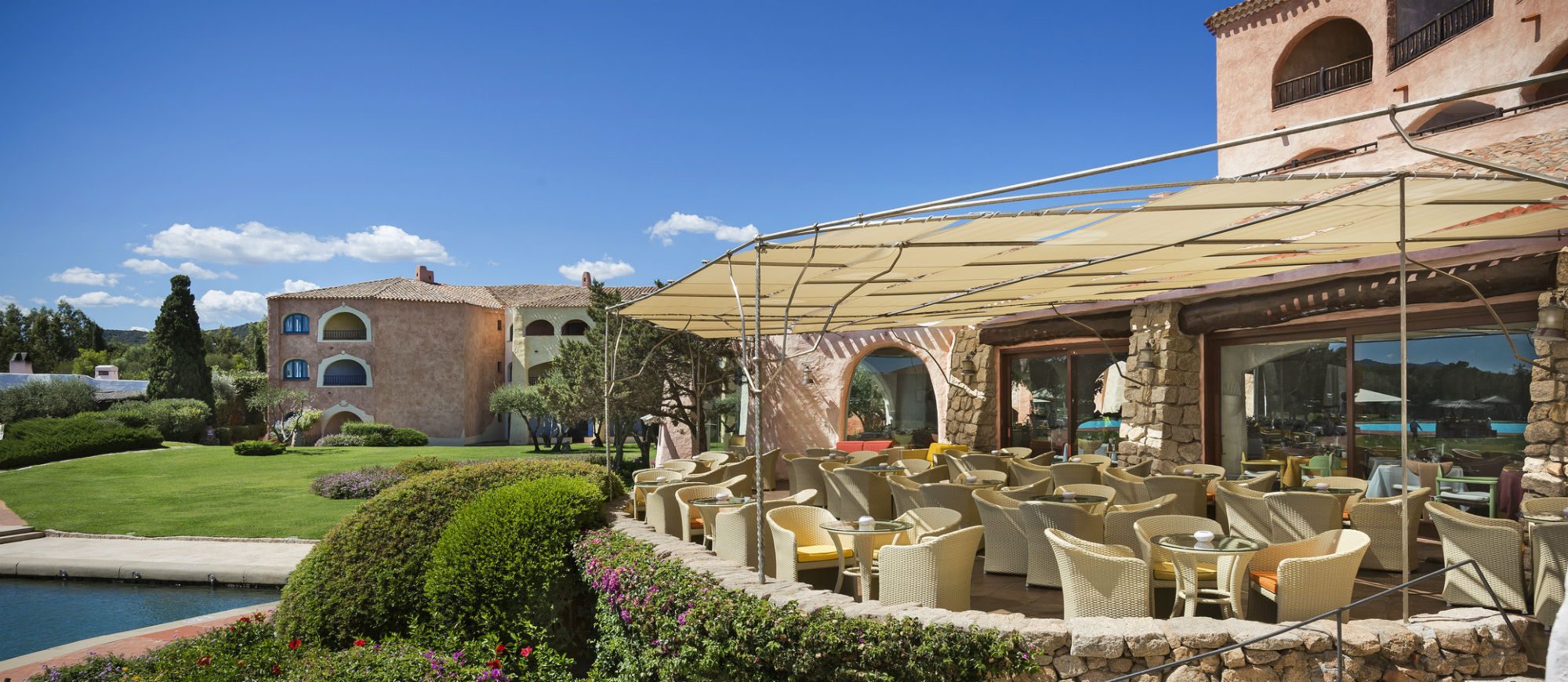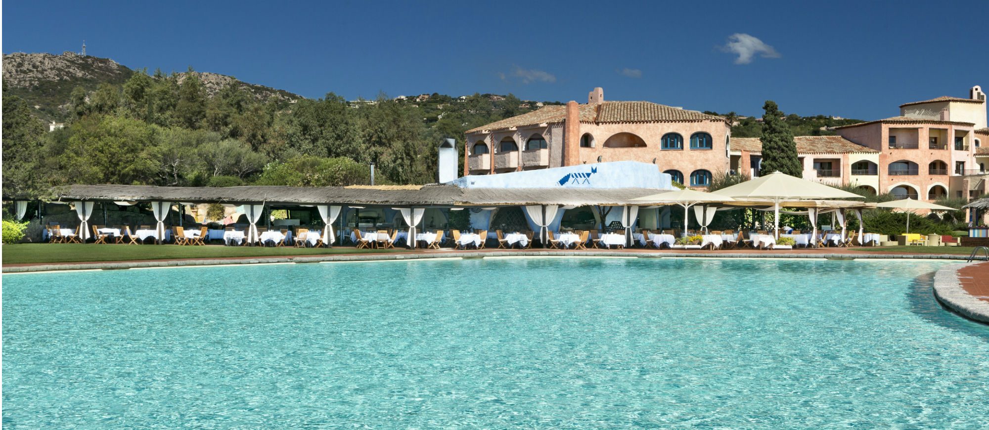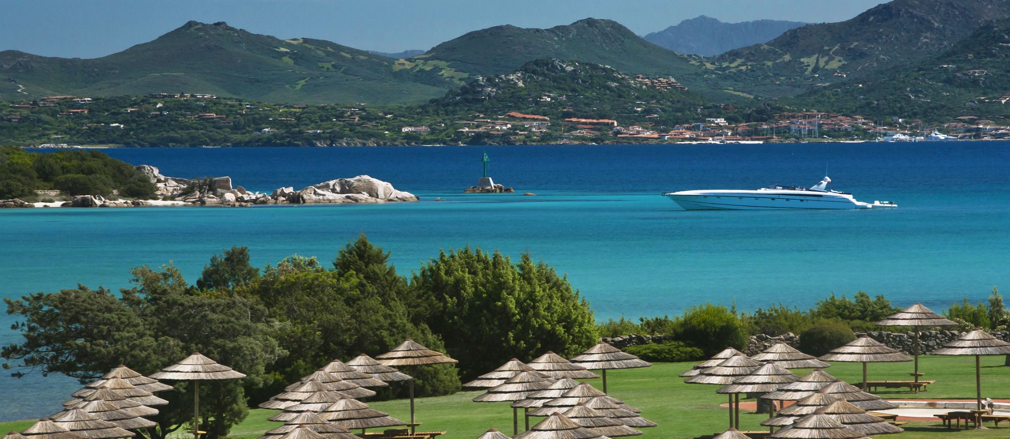 Lying on the most strikingly romantic stretch of the Costa Smeralda, the hotel resembles a charming fishing village, with its picturesque Sardinian houses and landing stage jutting out into a sea of translucent turquoise, emerald green and deepest azure.