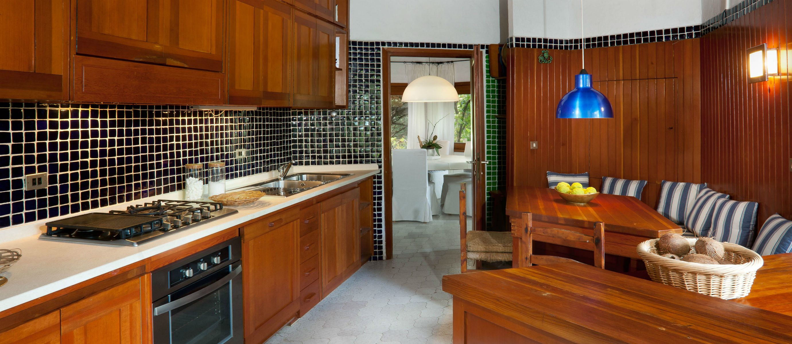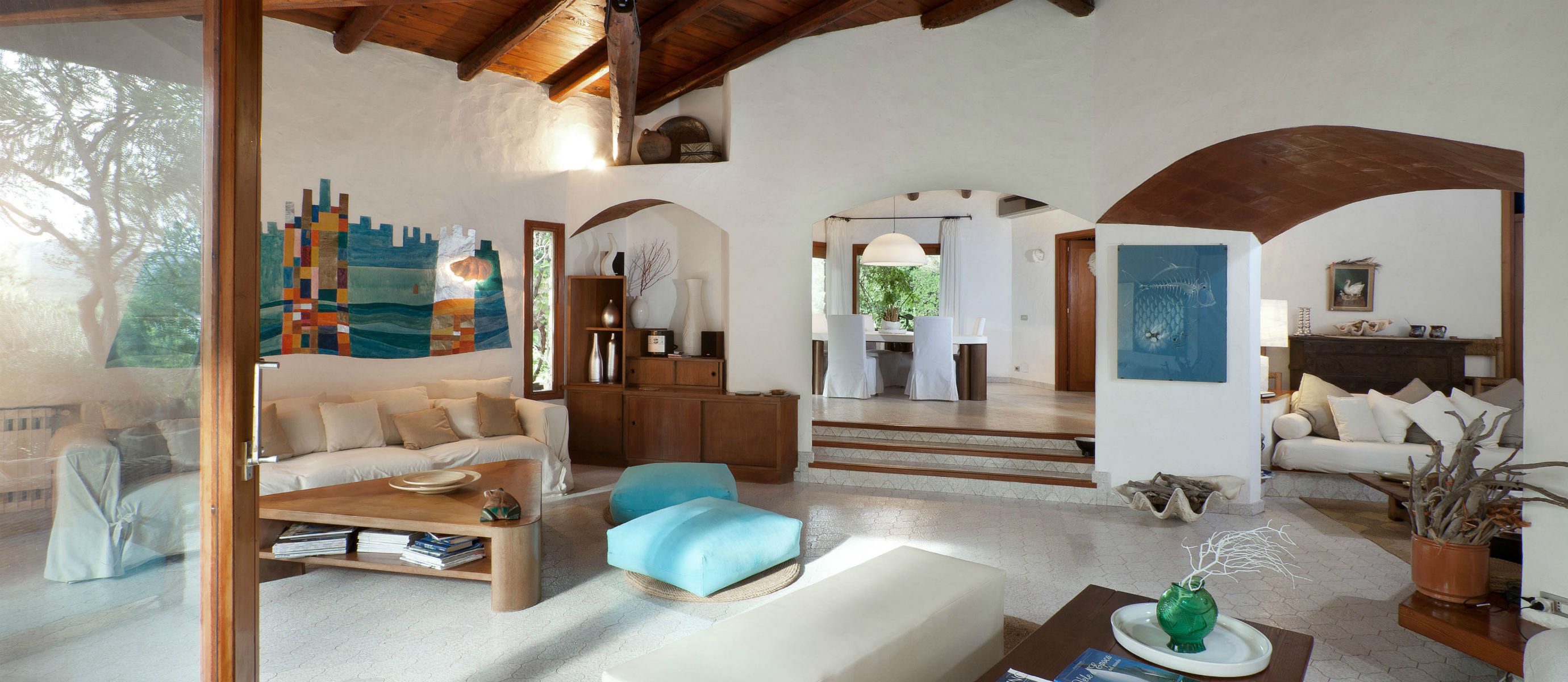 Entrance hall. Living room with dining area. Fully equipped kitchen. Outdoor terrace with living area. Outdoor al fresco dining area with views on the bay. Two double bedrooms with en-suite bathrooms. Two twin bedrooms with shared bathrooms. Guest cloakroom.