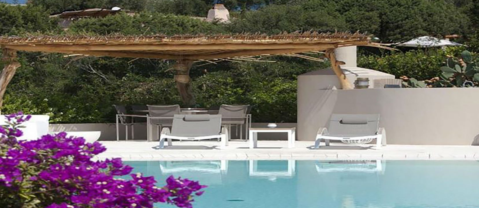 This is a romantic and tasteful property with large and beautiful gardens in La Celvia, a few minutes walk to the beach, and close to the Cala di Volpe hotel and Pevero golf club. The house has been recently renovated to a very high standard. The house has spacious outdoor living and dining areas, and very attractive terraces, with sea views. The swimming pool is on a slightly higher level with its own covered dining area and summer kitchen.
