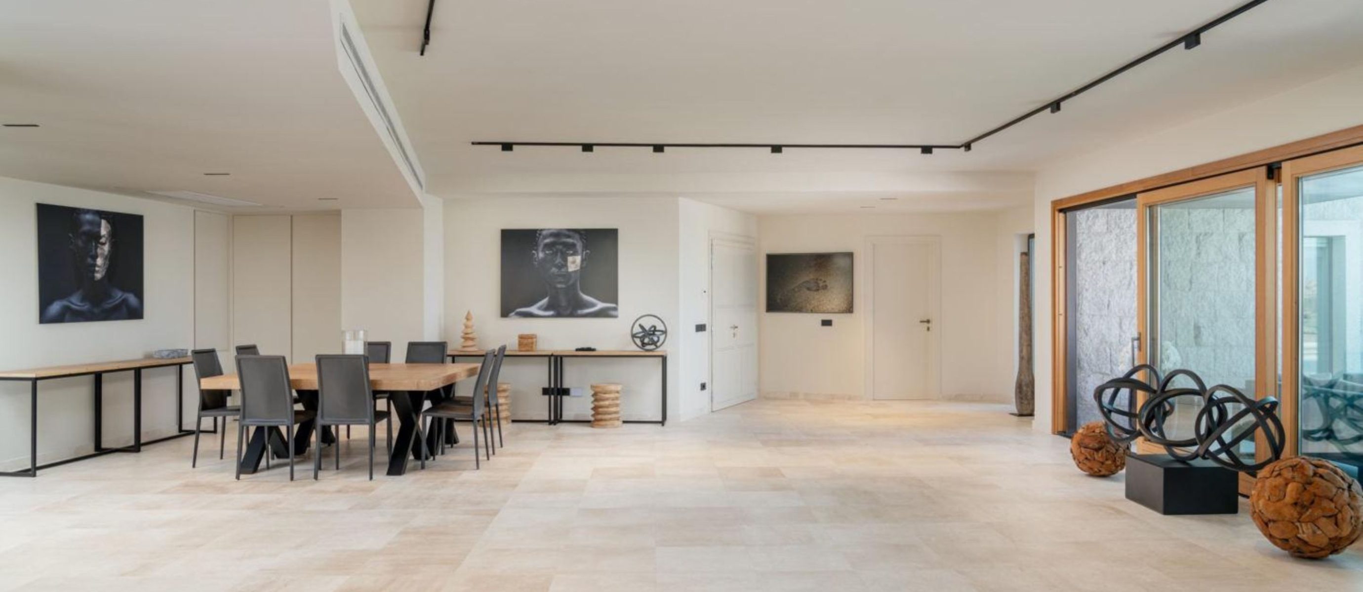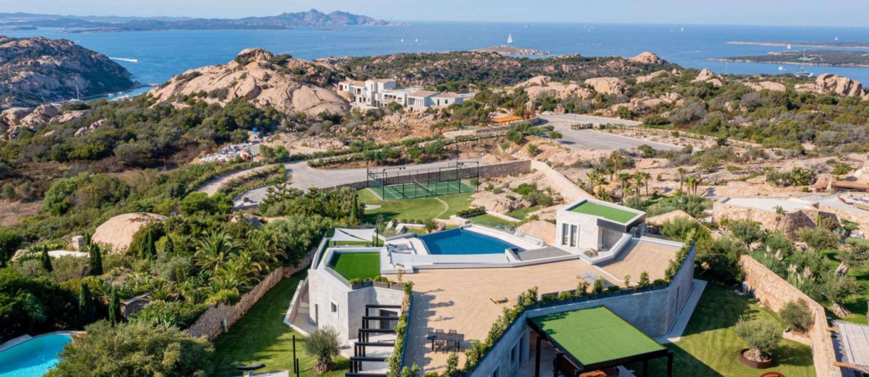 Step outside, and the villa’s allure continues with a panoramic swimming pool that offers breathtaking views of the Maddalena archipelago, a tennis and paddle court and lush green spaces for leisurely walks. The villa is enveloped by nearly 8,000 square meters of verdant parkland, offering two grand entrances and ample parking for 4 to 6 vehicles.