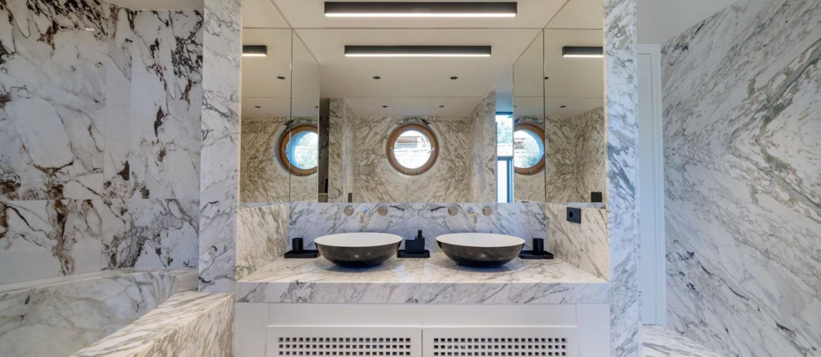 The villa features seven sumptuous double bedrooms, each with an en-suite bathroom, ensuring ultimate privacy and convenience for each guest. Practicality is seamlessly integrated with luxury, with a dedicated staff area, laundry facilities, a well-stocked pantry, a guest bathroom, and internal parking. Modern comforts are abundant, and include air conditioning in all rooms, satellite TV, Wi-Fi and a cutting-edge alarm system.