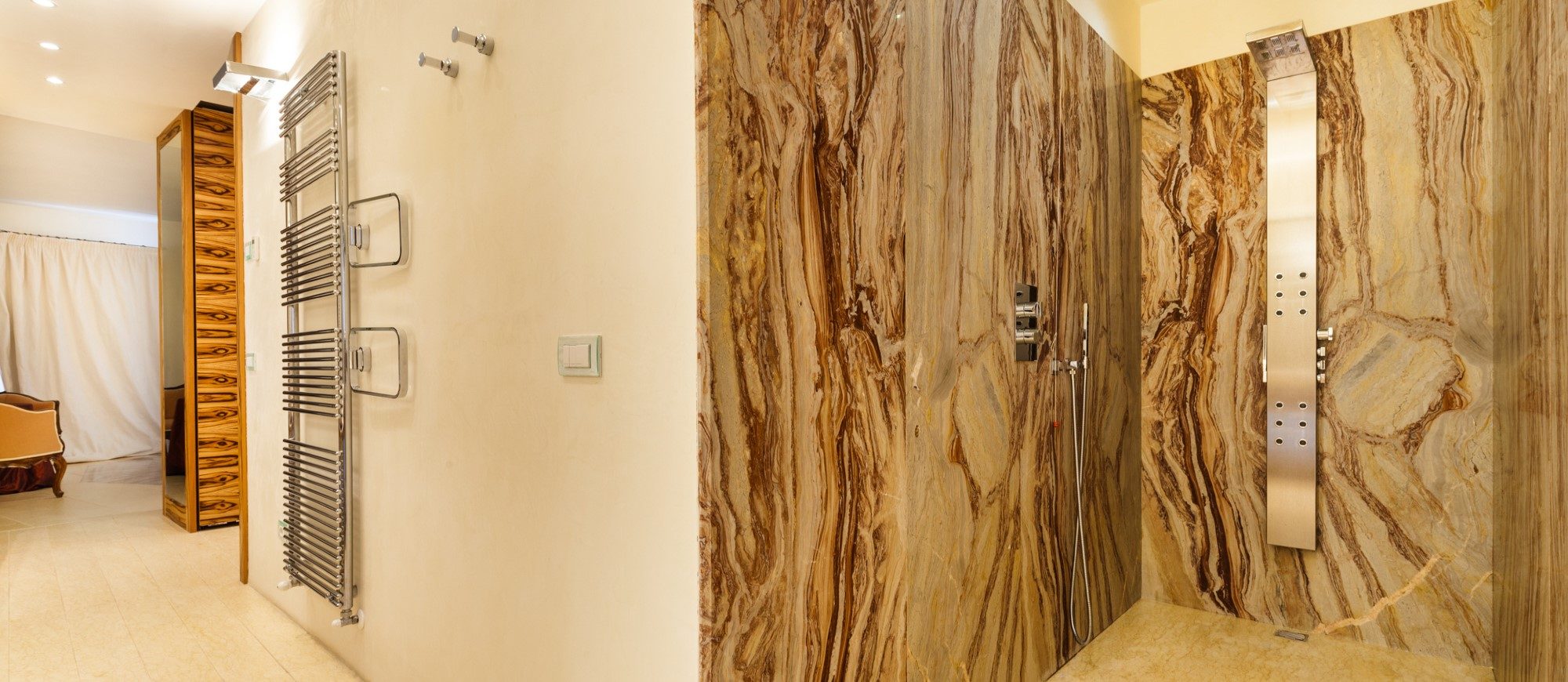 The Tower House: Double bedroom with en-suite shower room and private terrace.