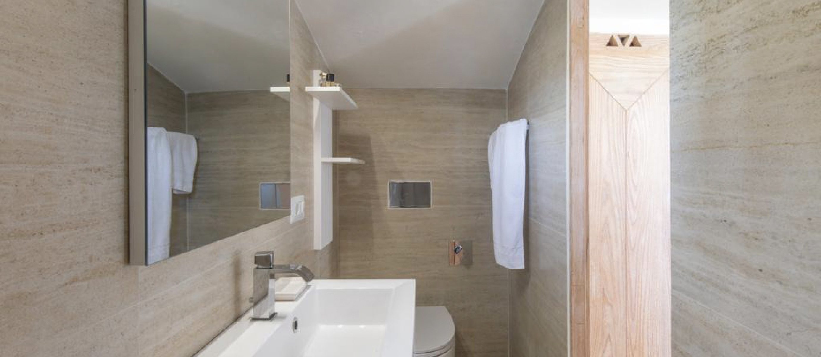 Recently renovated, the property offers a blend of sophistication and comfort – a spacious living room with an open air feel looking out to the ocean with a designated dining area – providing an ideal space for relaxation and entertainment. The villa features three double bedrooms each with it’s own private bathrooms. There is an additional external double room with a shower and a small bathroom if needed. For added convenience, the villa also features a dedicated laundry area and an internal parking space.