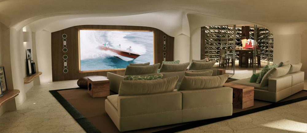 - Entertainment area with cinema room, wine cellar and bar