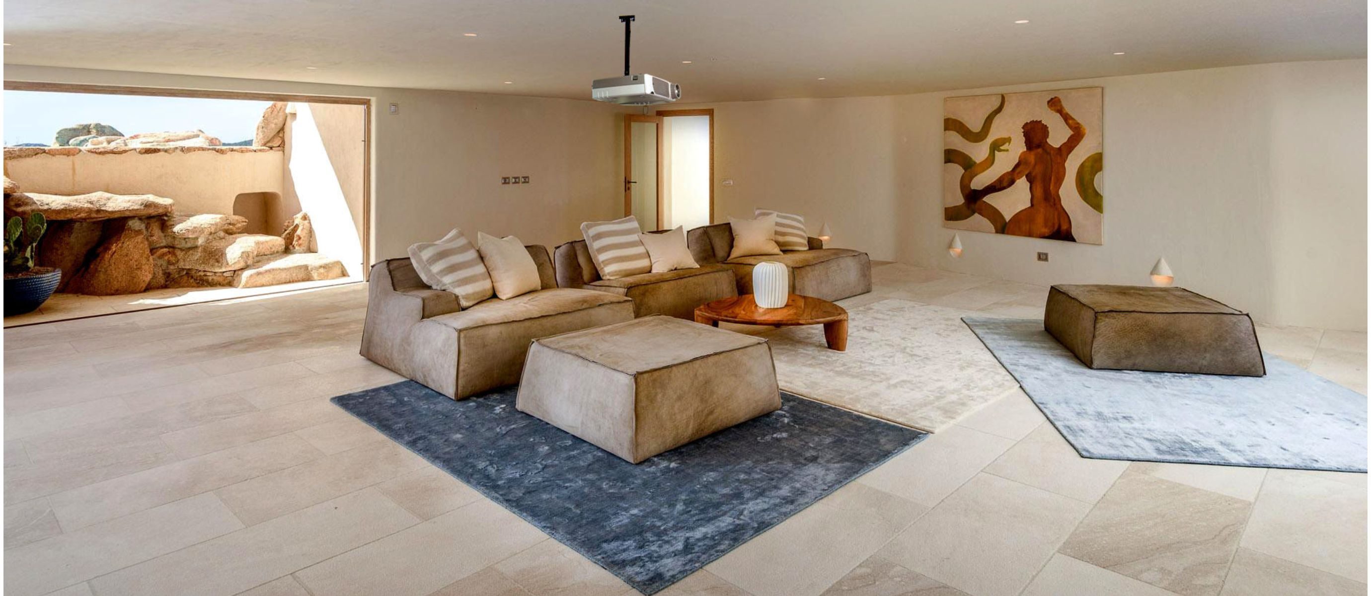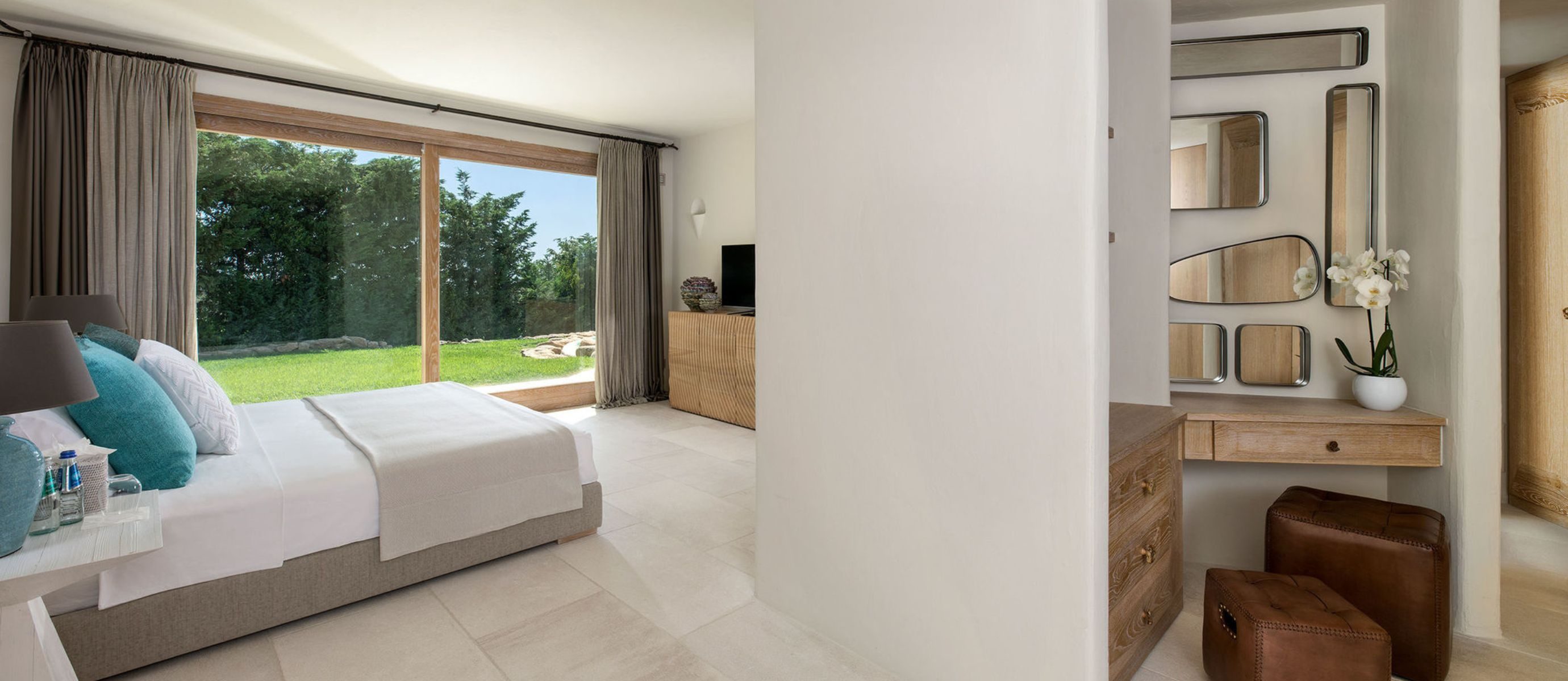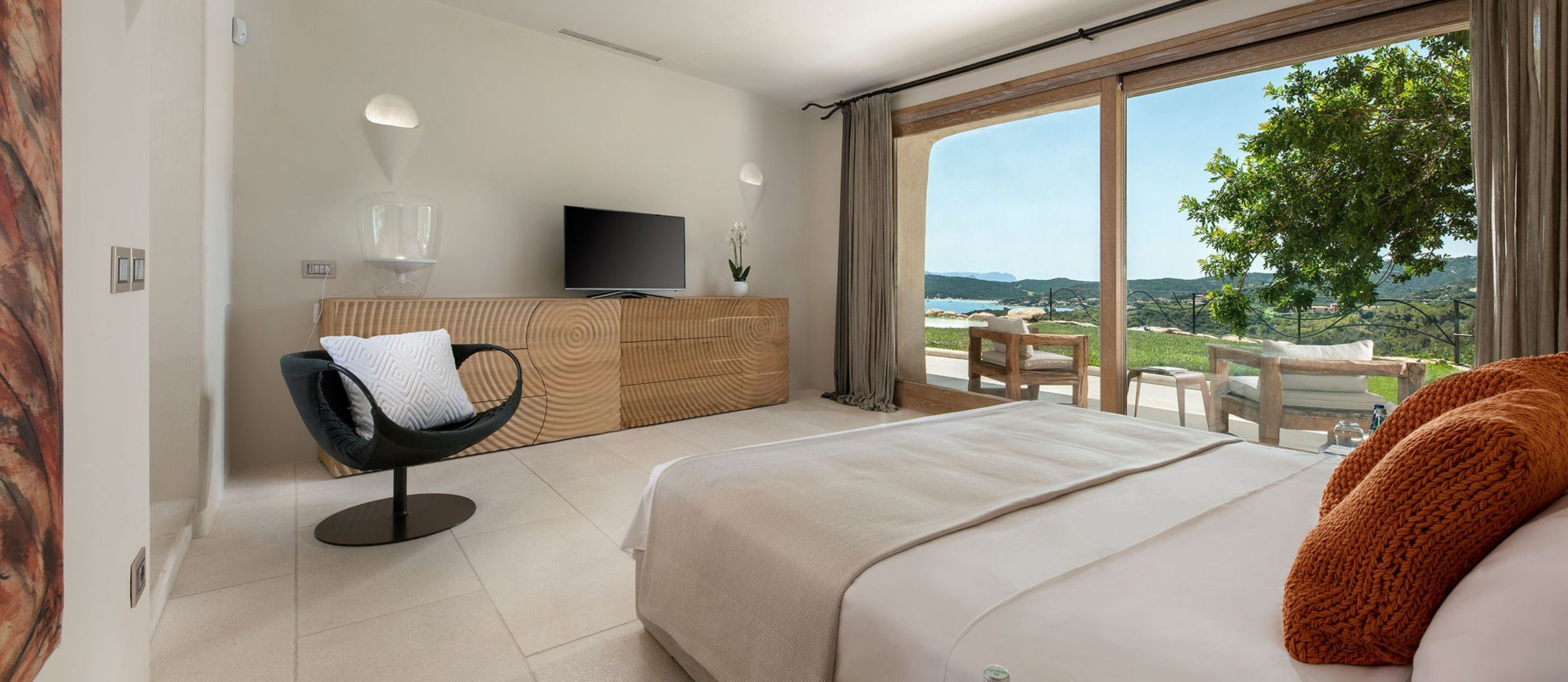 Each of the six elegantly appointed bedrooms has its own en-suite bathroom and private entrance offering an oasis of tranquillity for every guest. The master suite boasts a king-size bed, walk-in wardrobe and luxurious en-suite with a hydro-massage tub. Guest rooms open onto private terraces where the Sardinian breeze whispers of endless summer days.