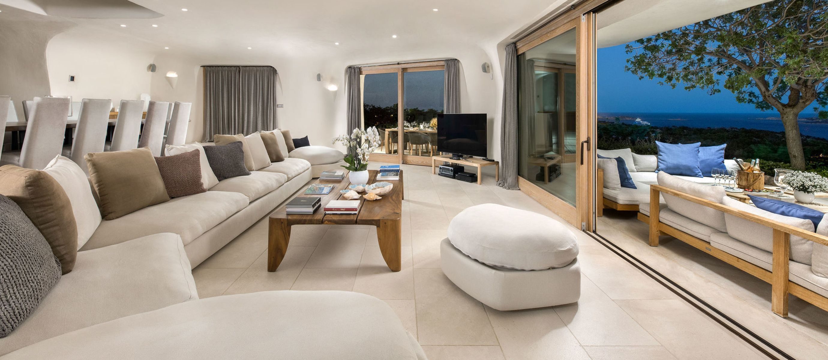 - Sea-facing covered terrace with sitting and dining areas