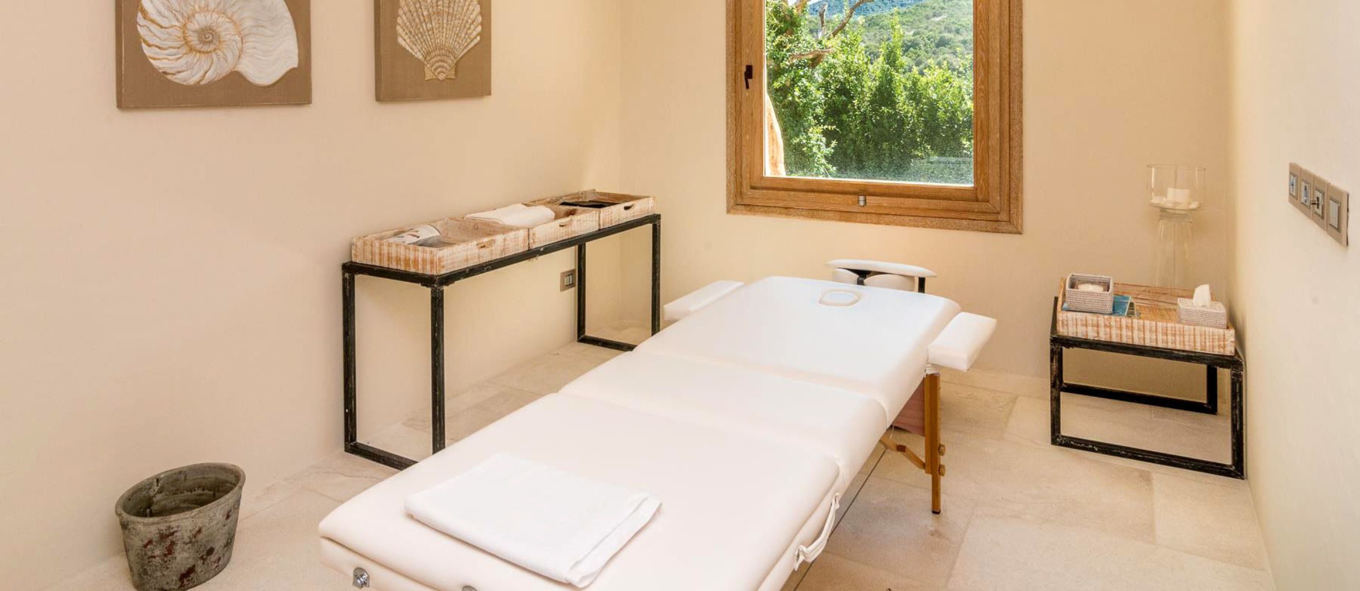 - Wellness area with gym, TV, relaxation area, bar, massage rooms, shower & toilet