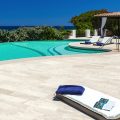 The swimming pool is on a wide terrace, including a large covered verandah with a lounge area, dining area and outdoor kitchen. From the pool, it is just a short walk through the grounds to a gate that leads directly to a sandy beach.