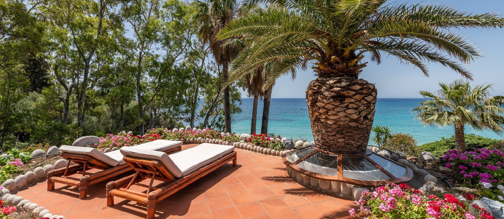 Overlooking the turquoise sea, surrounded by a lush and verdant garden, one of the most exclusive villas on the island