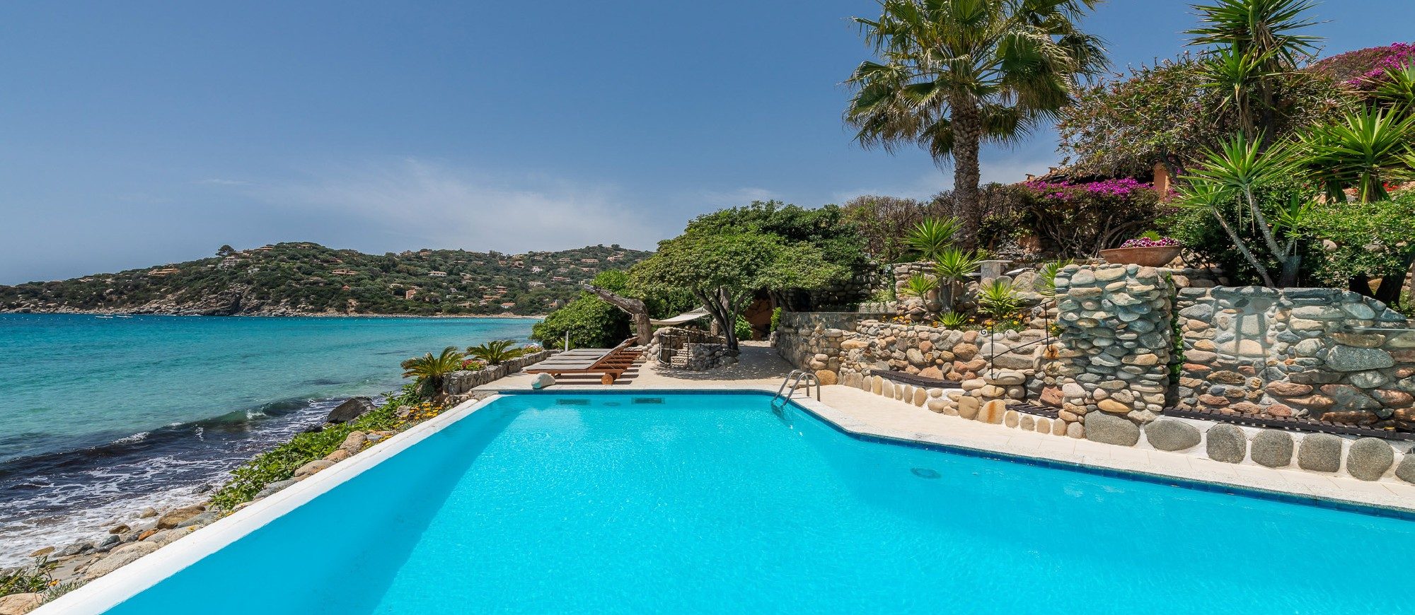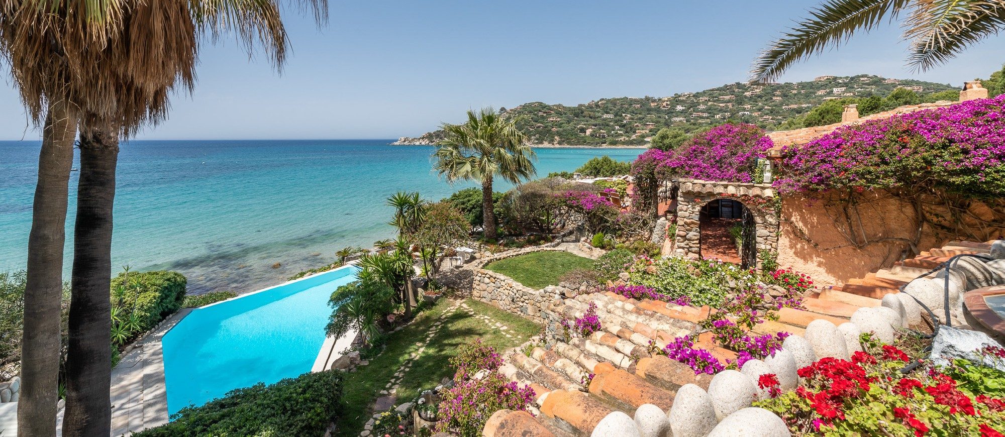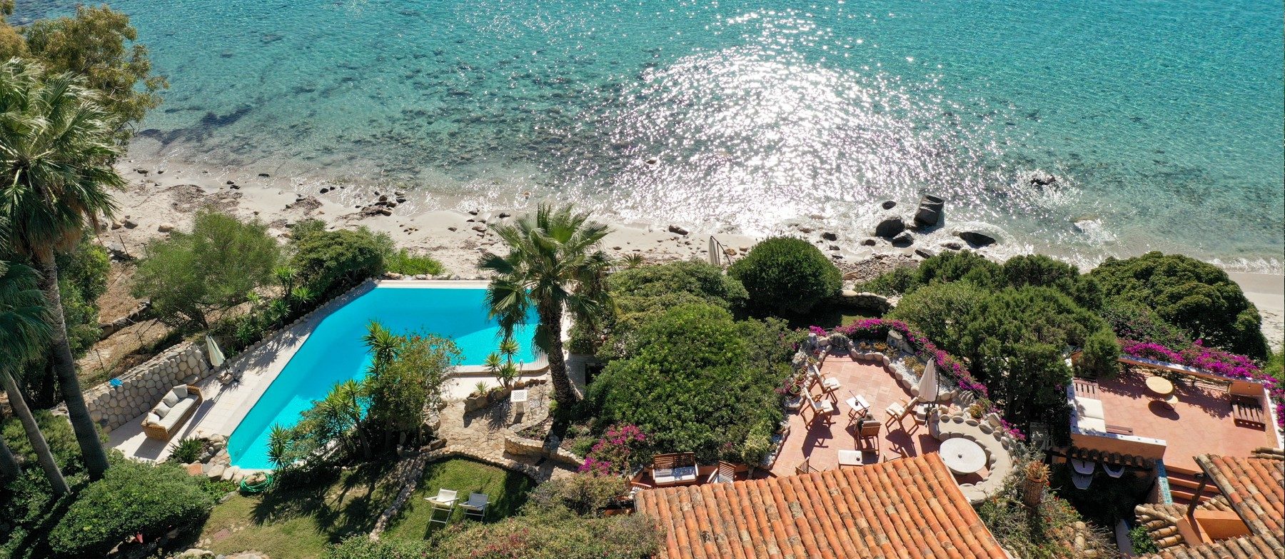 It is a unique villa under many aspects: right in front of a golden sandy beach, with a private infinity edge swimming pool overlooking the turquoise sea, surrounded by a lush and verdant garden and walking distance to restaurants and parks.