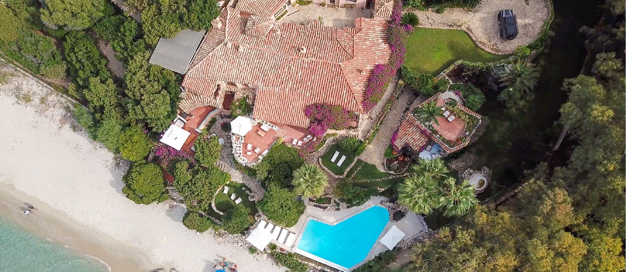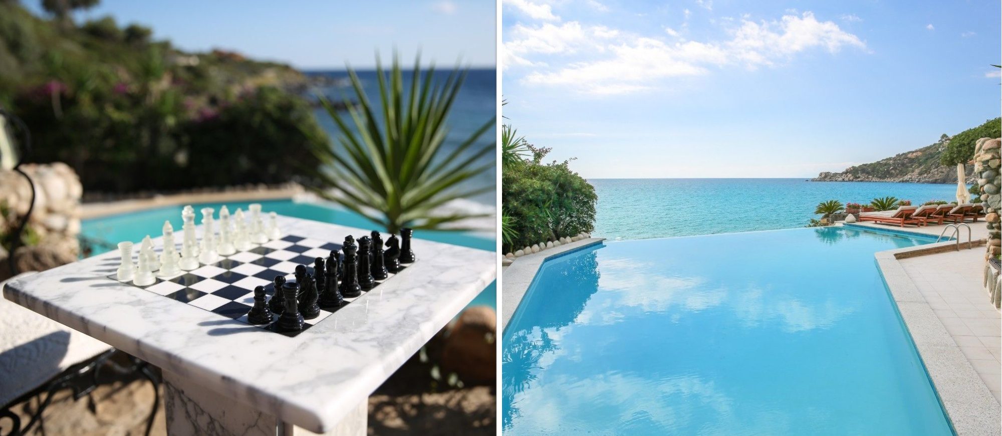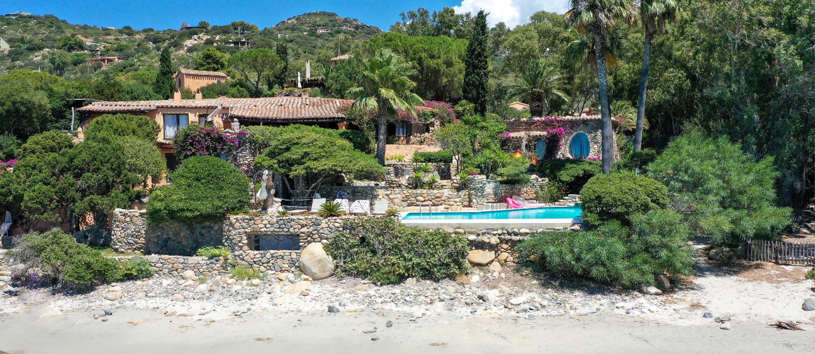 It is a unique villa under many aspects: right in front of a golden sandy beach, with a private infinity edge swimming pool overlooking the turquoise sea, surrounded by a lush and verdant garden and walking distance to restaurants and parks.