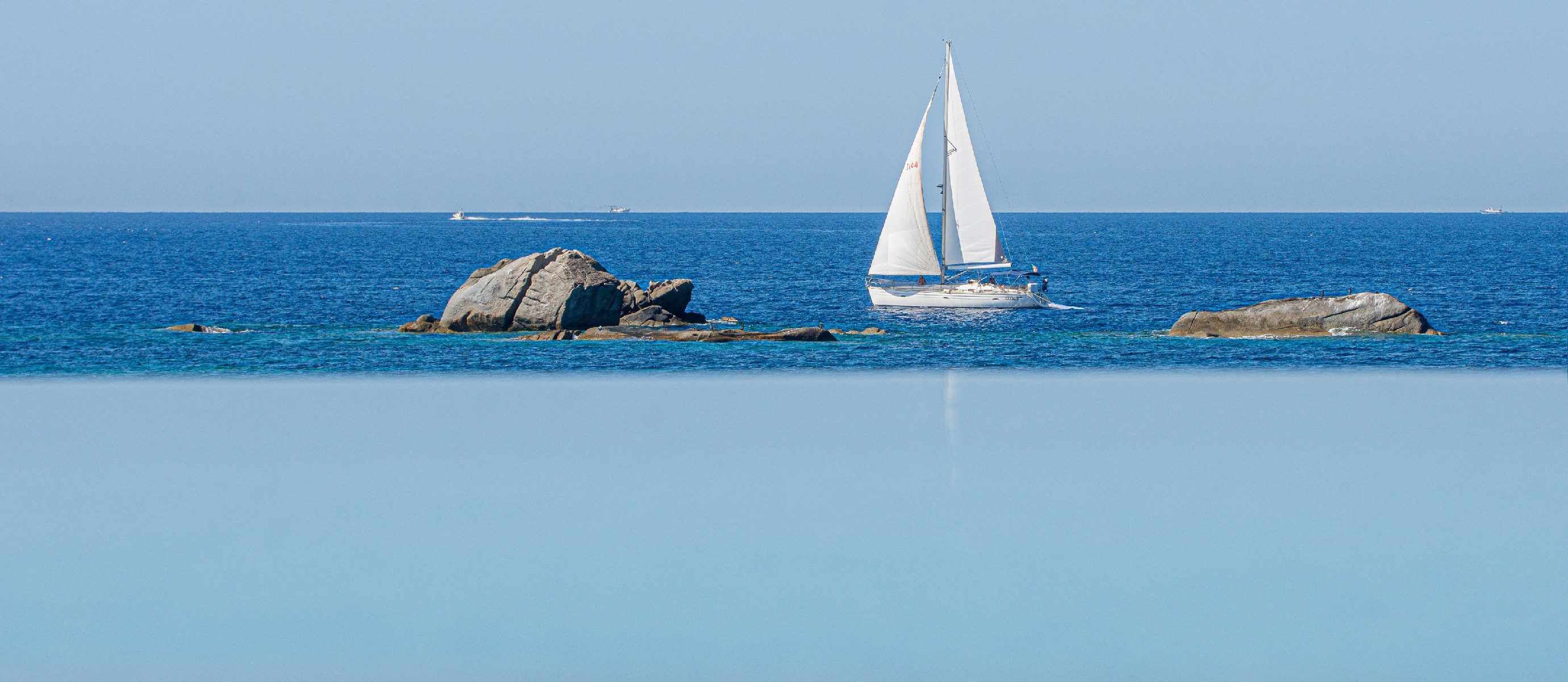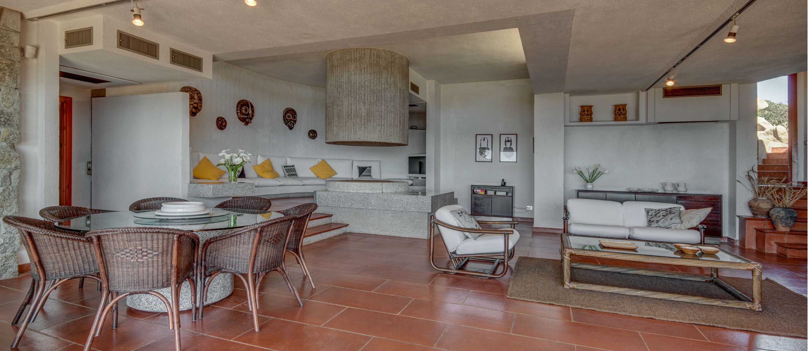 Sunset Beach is located on the waterfront at Cala Caterina, the most prestigious residential beach area in Villasimius, on the south coast of the island. Surrounded by the perfumed and characteristic Mediterranean maquis, the sea is a stone’s throw from the villa, and with sea views from most rooms, it almost feels like being in a boat.