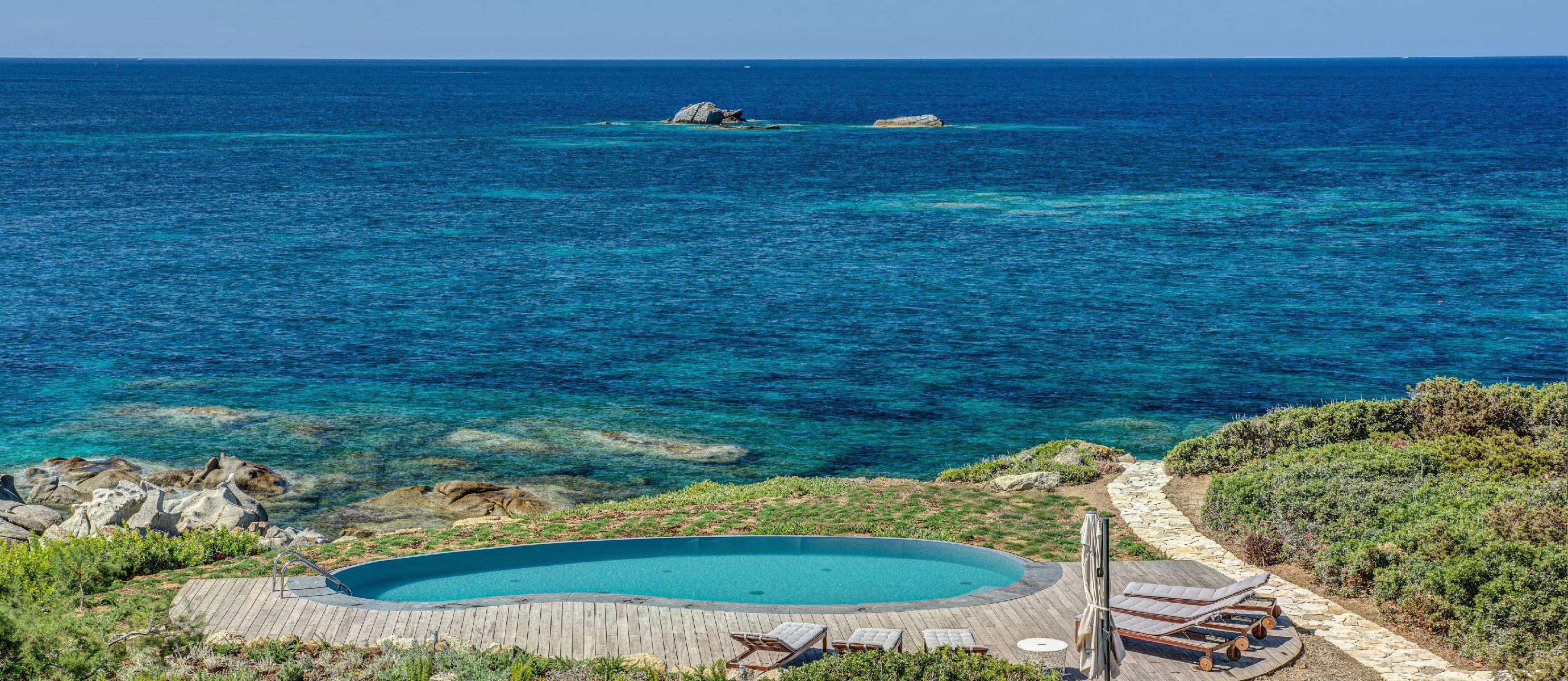 Sunset Beach is a peaceful haven and a perfect bolthole to enjoy the whole year round. Less than twenty metres from the villa, three paths lead to the sea, two to sandy beaches below the property and the third to a cove, where magnificent rocks have been sculpted by the wind and waves over millennia.