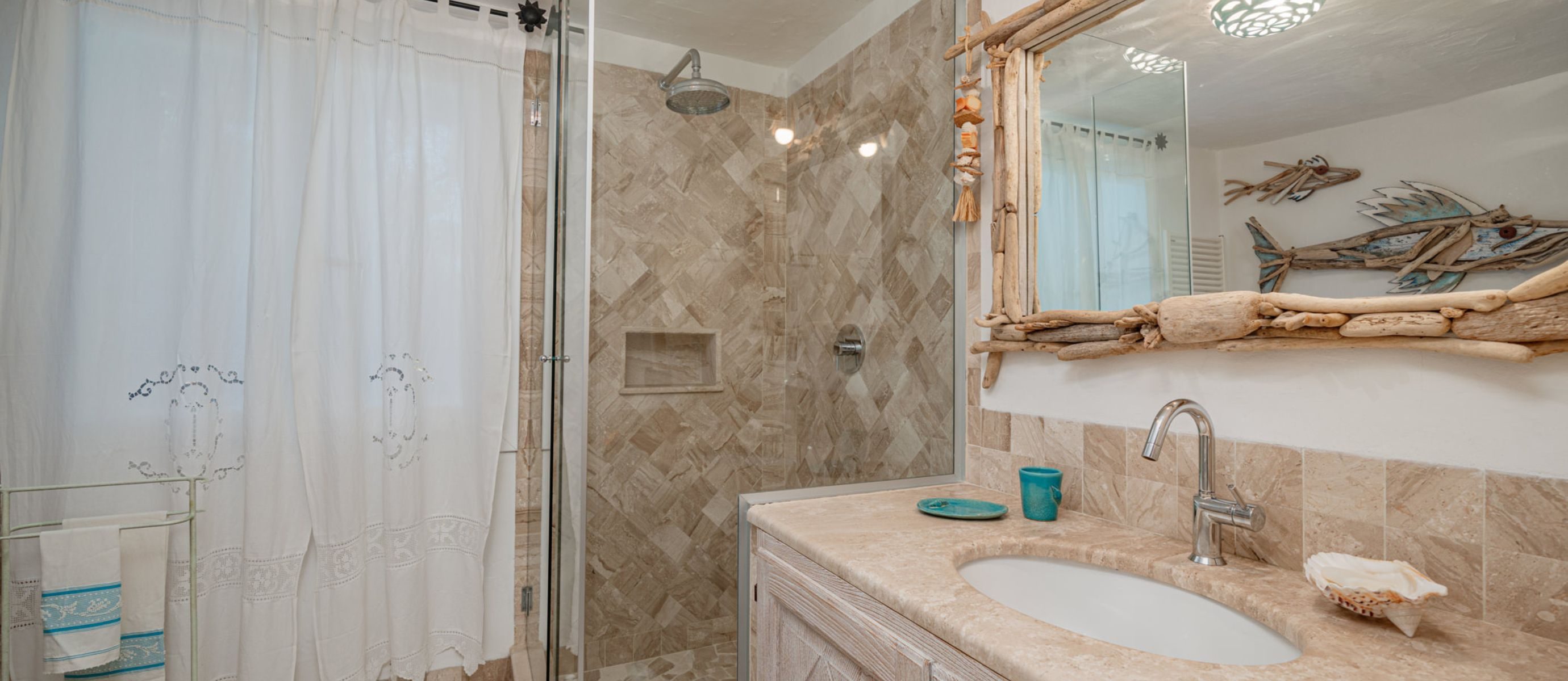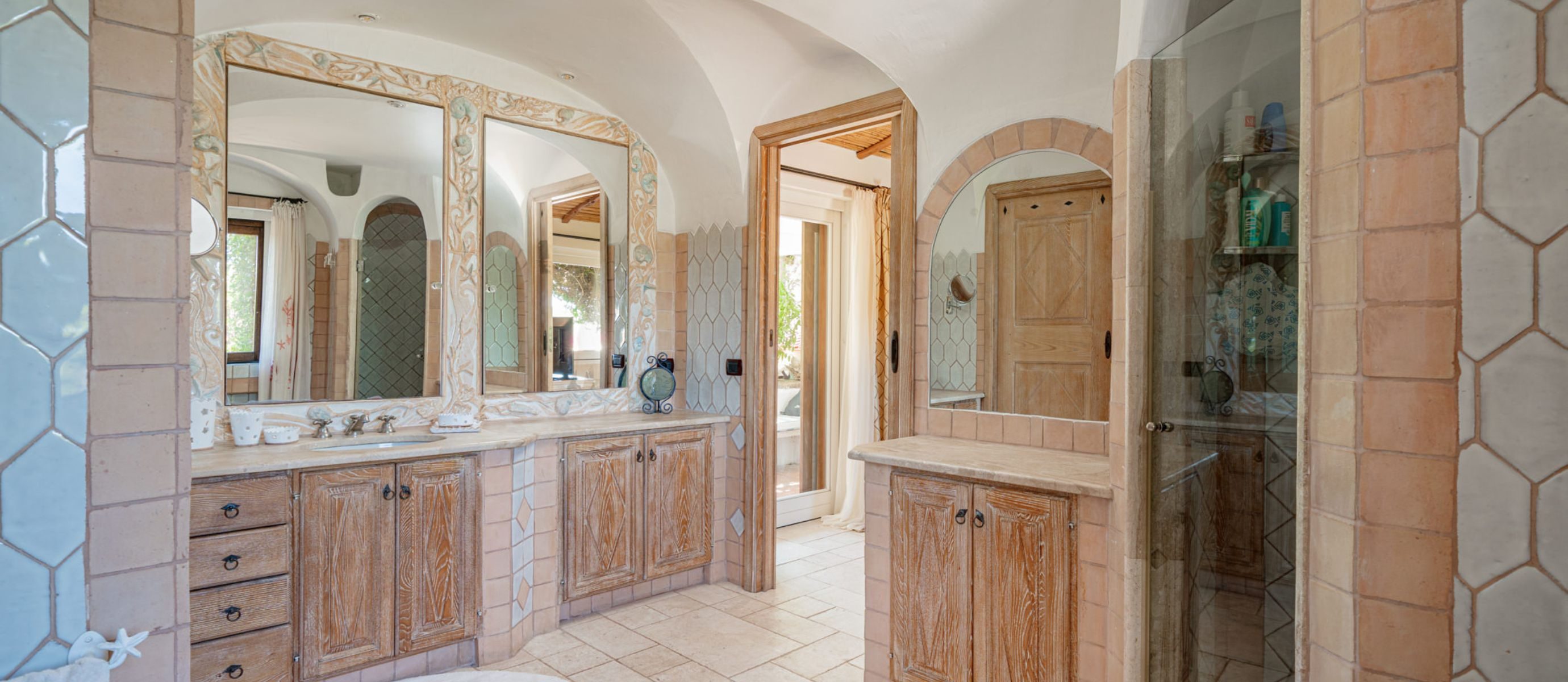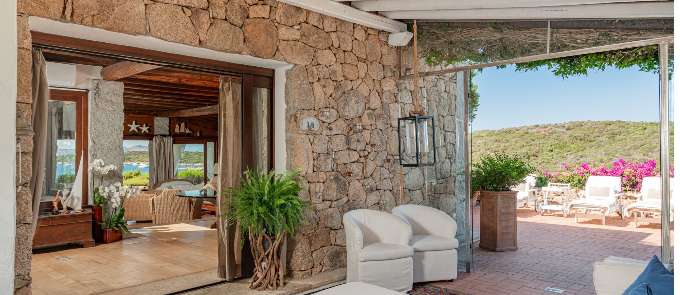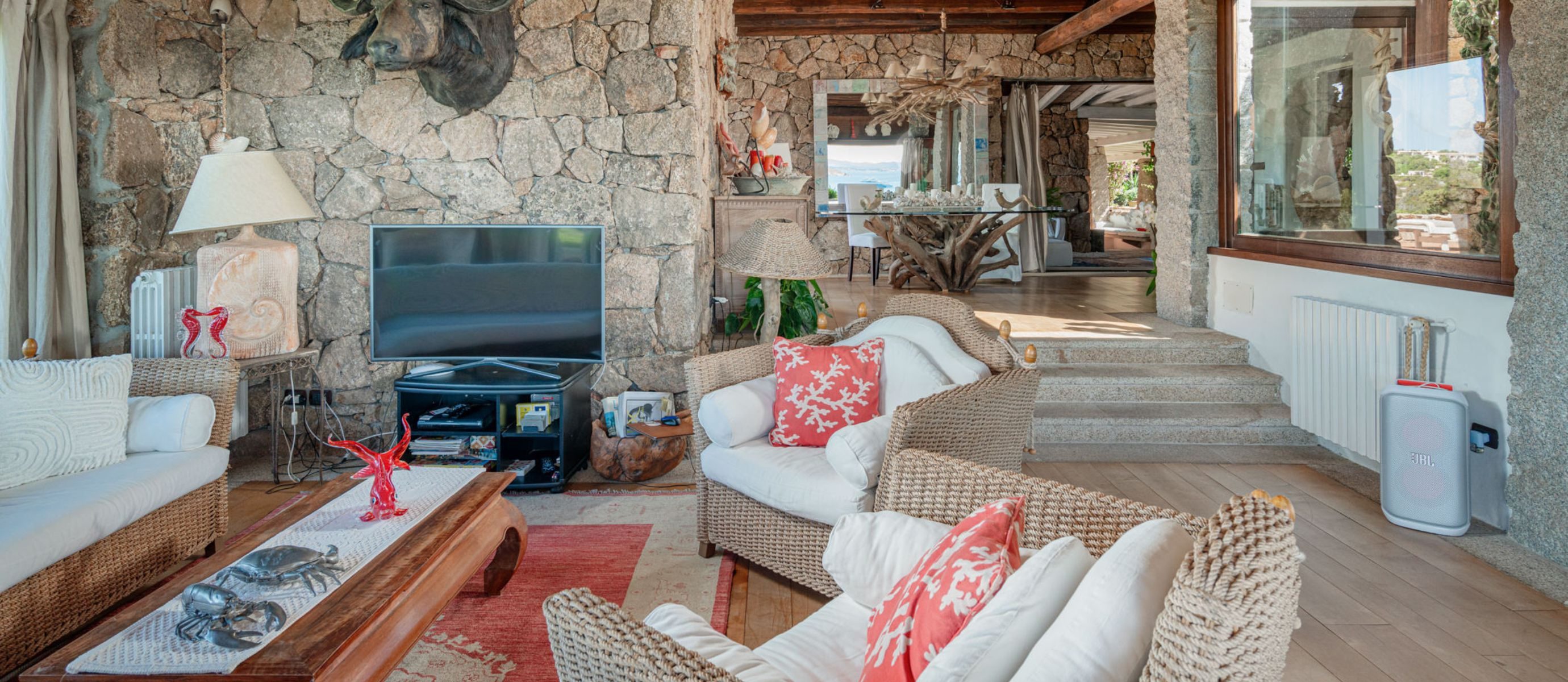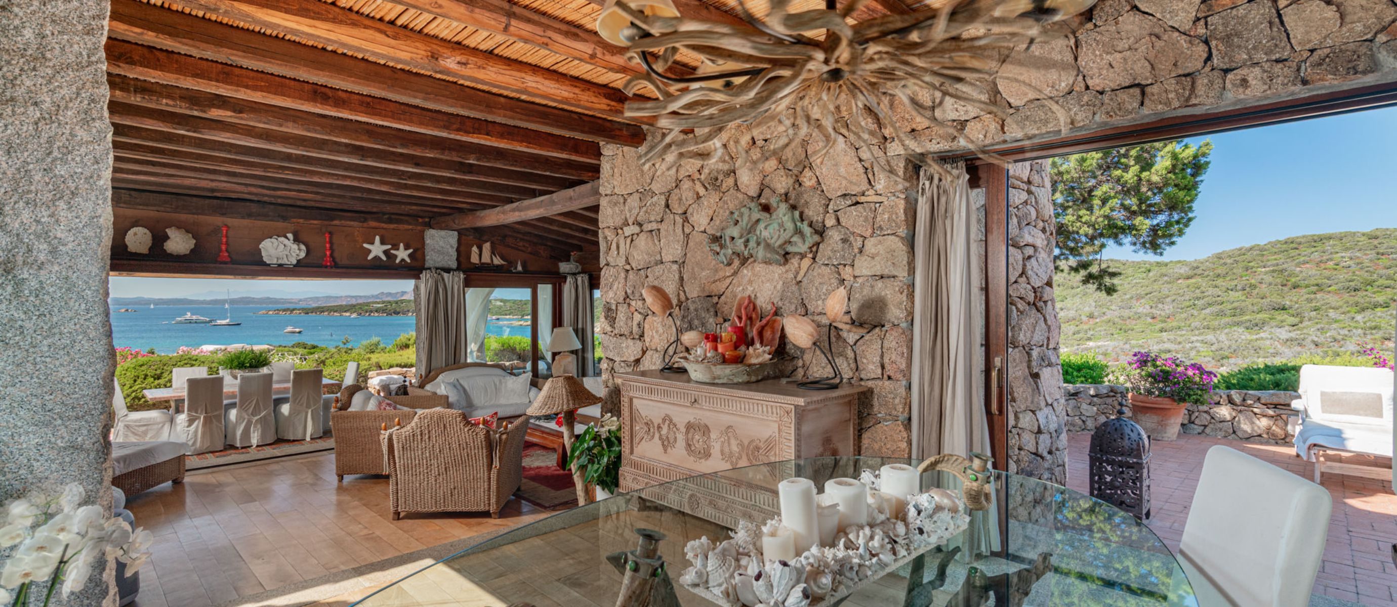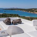 The home’s crown jewel is the upper-level terrace, offering extraordinary panoramic views of the sea and some of the most unforgettable sunsets Sardinia has to offer. Whether enjoying a quiet morning coffee or an evening aperitivo, this space captures the island’s magic like few others.