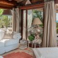 Outside, a large private swimming pool surrounded by sun beds invites lazy afternoons, while thoughtfully landscaped grounds enhance the atmosphere of serene luxury. Modern facilities such as air conditioning throughout ensure comfort no matter the season.