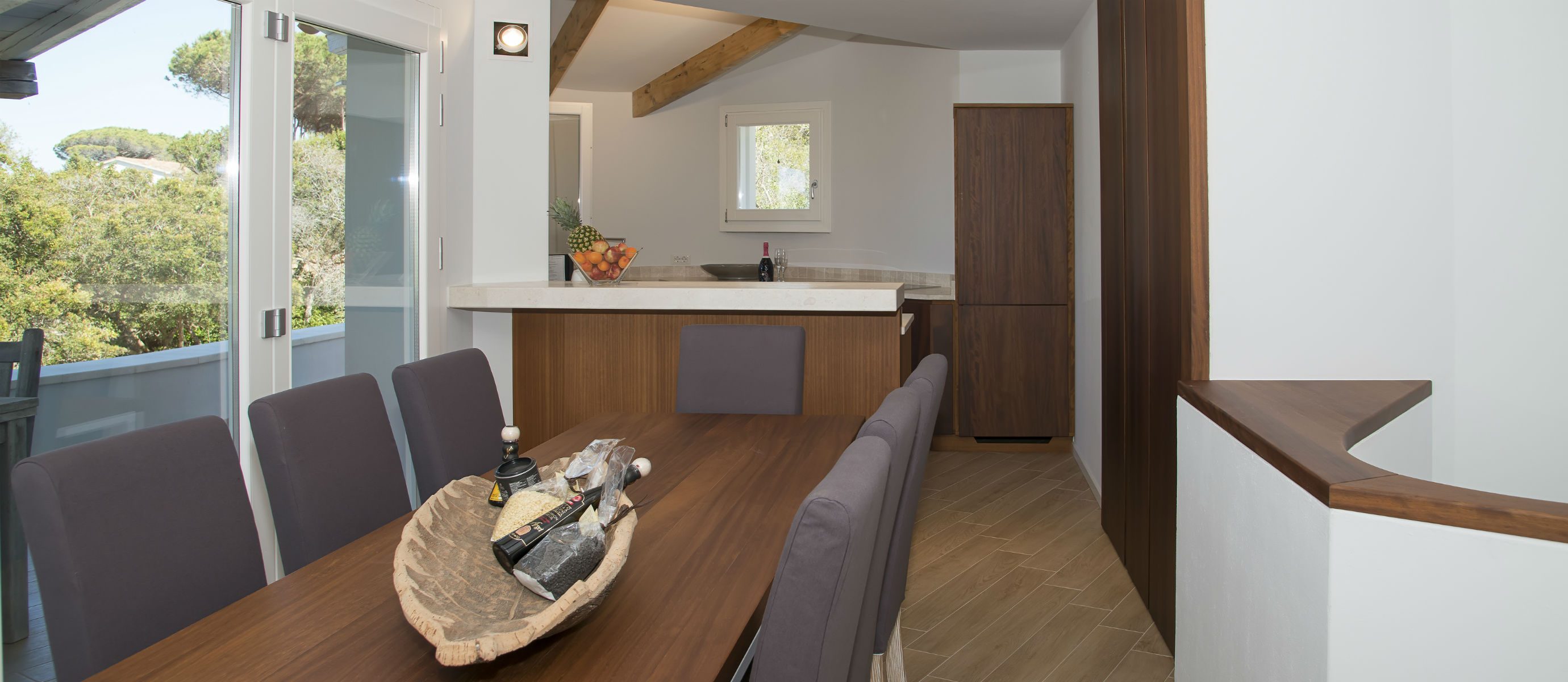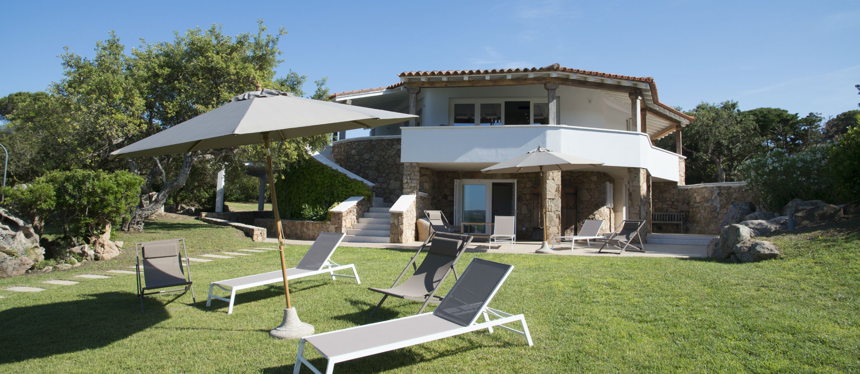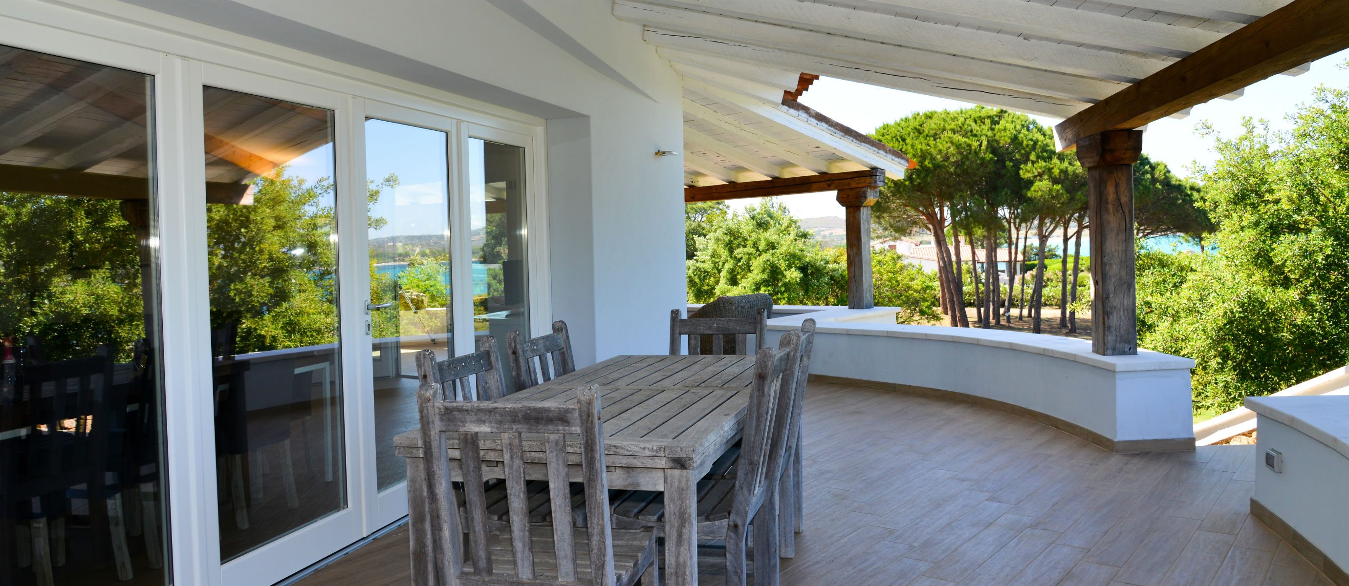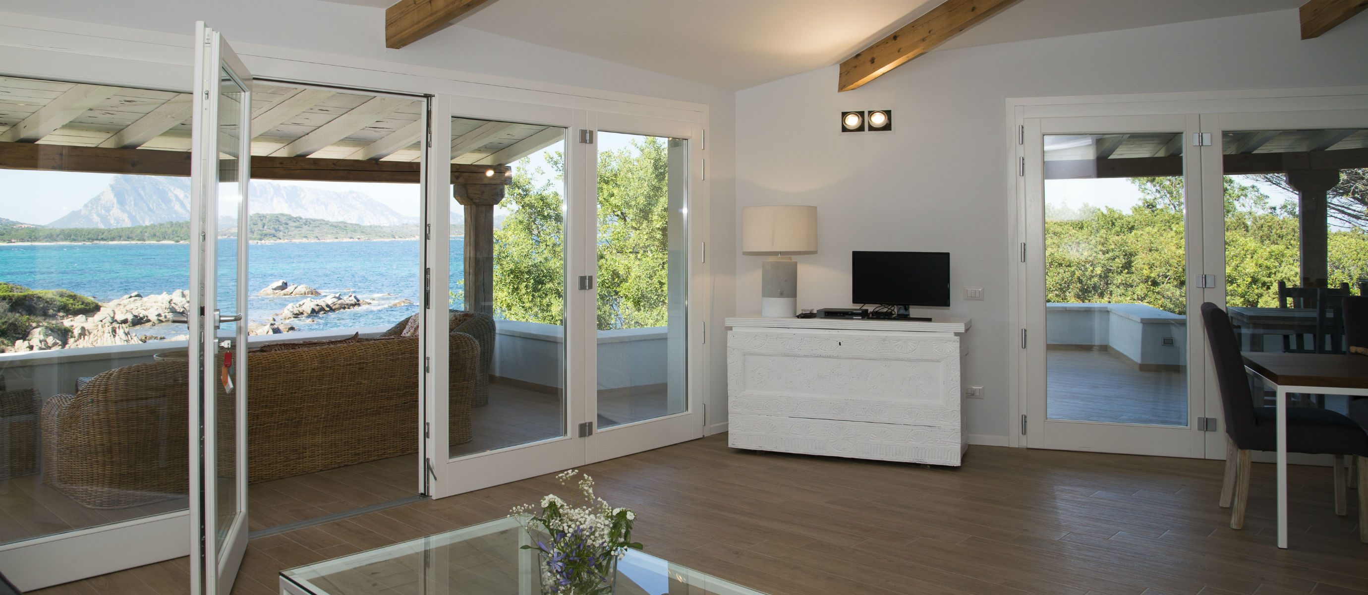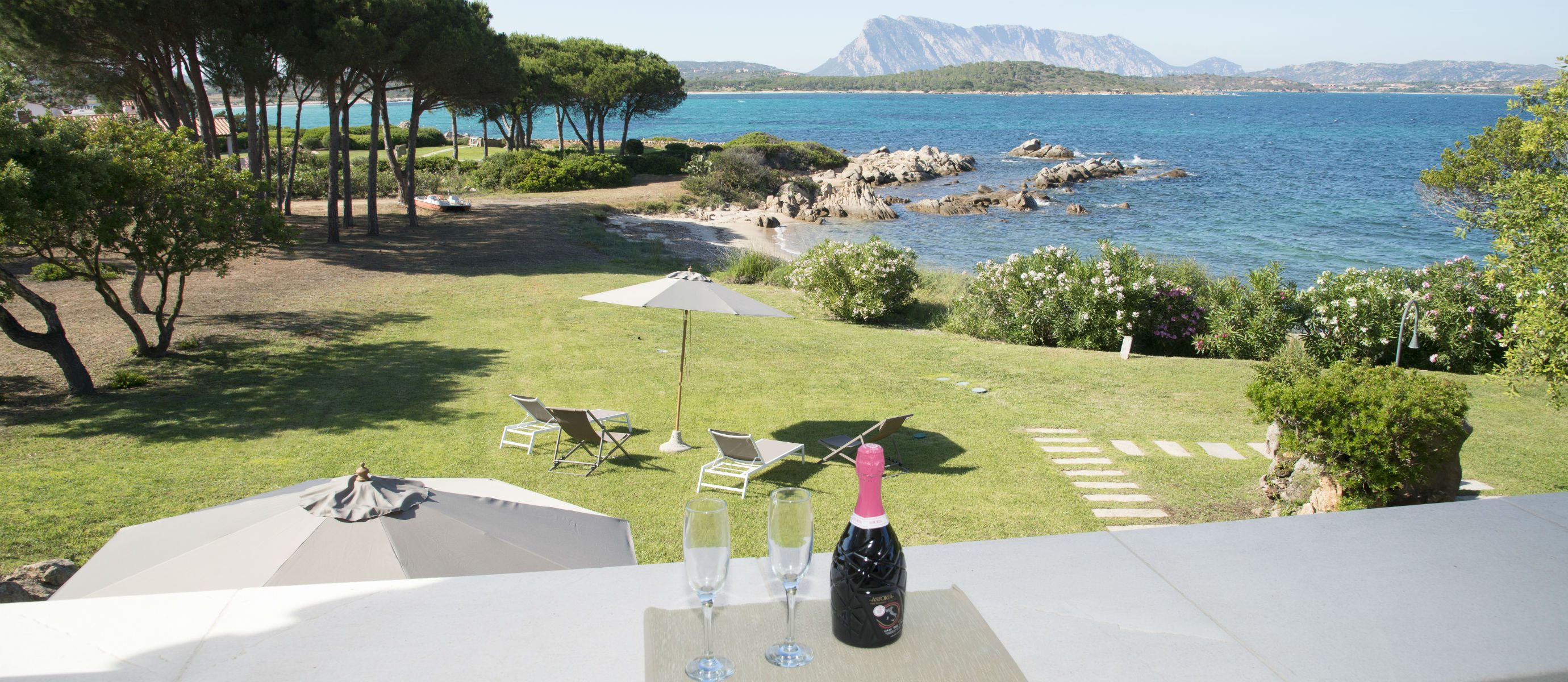 A spacious terrace has sofas and chairs, and also a table for outdoor dining. There is a large garden and maritime pine forest, with olive trees and cacti, and an outdoor shower. There is a BBQ on the terrace. You can hear the sea from the villa at night and watch the changing colour of blue during the day, with the island of Tavolara in the distance.