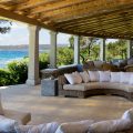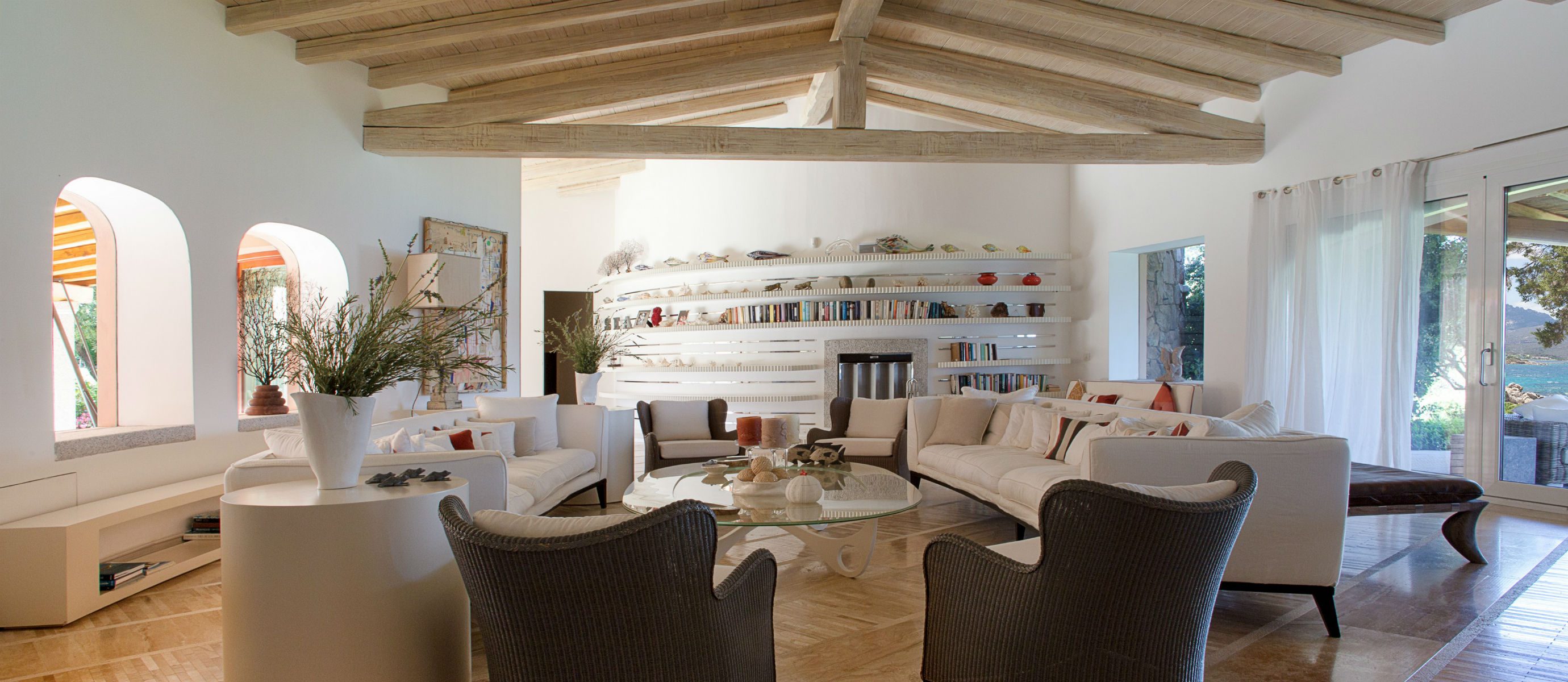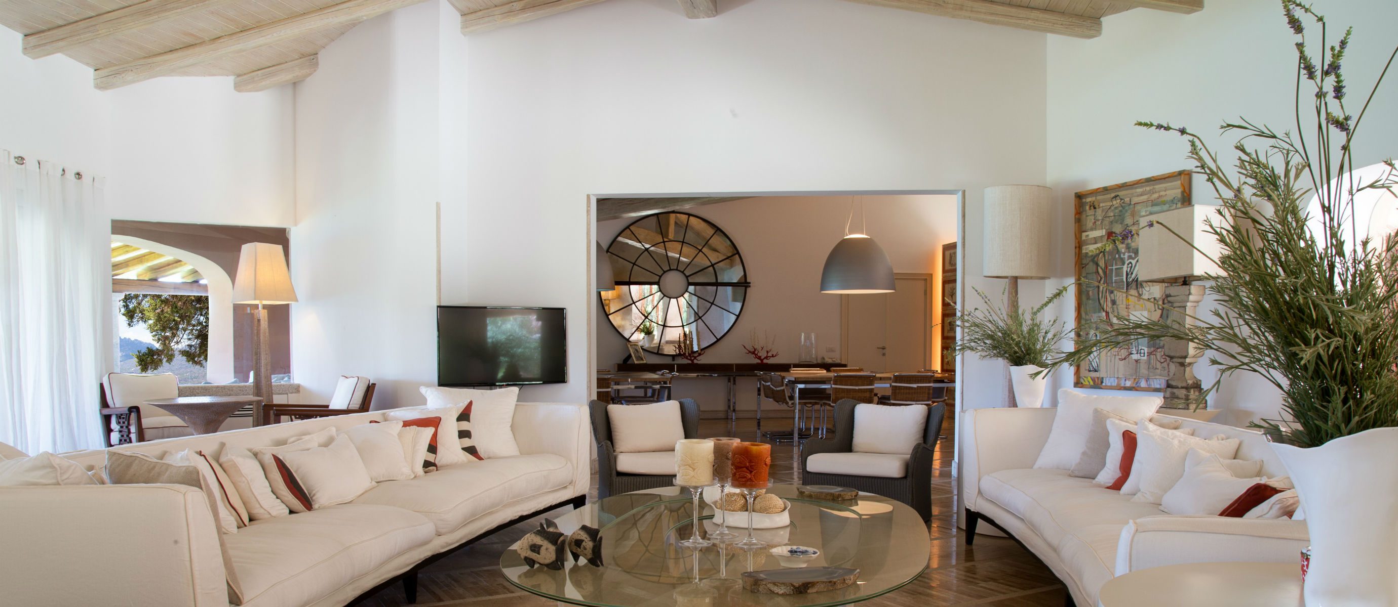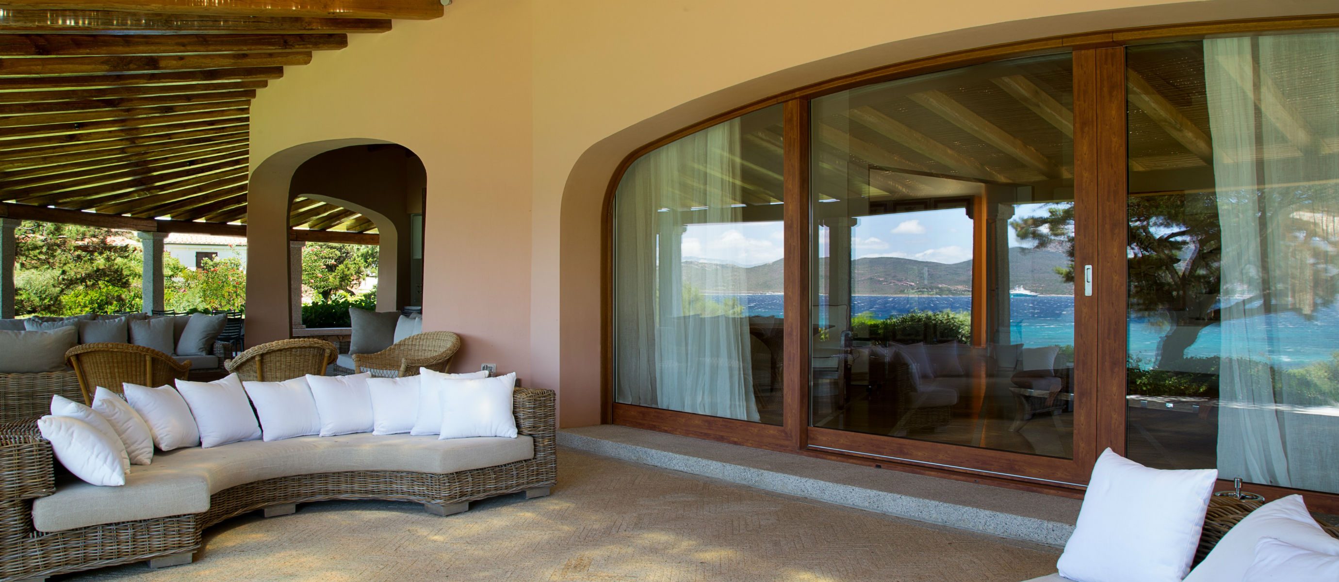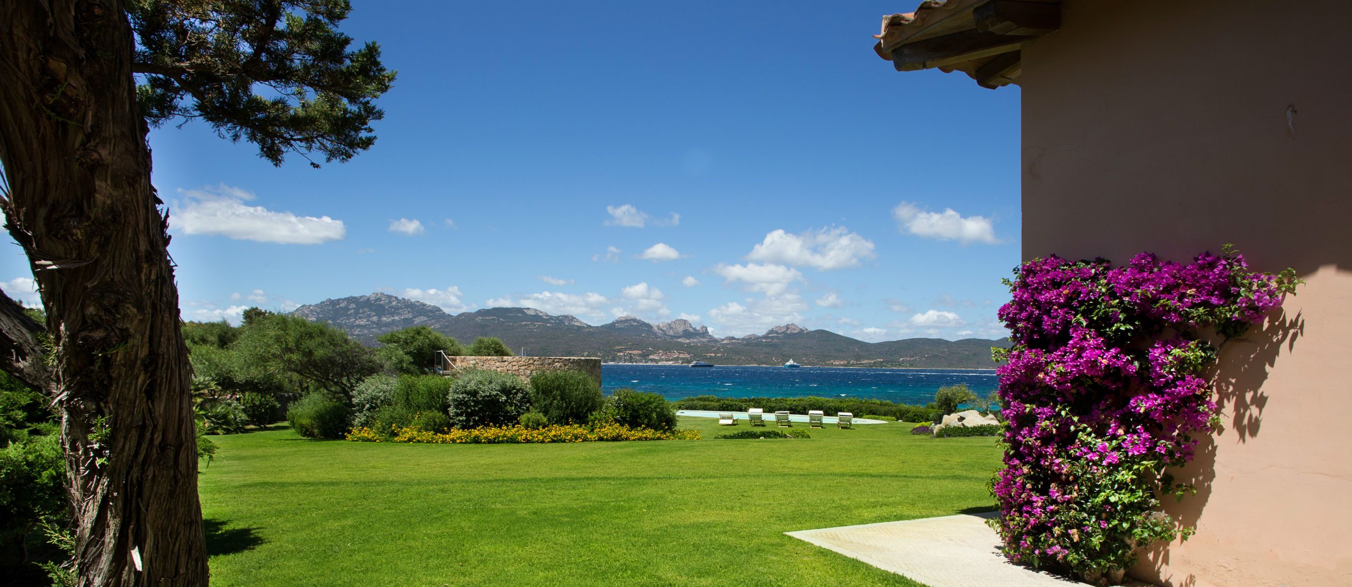 This is a beautiful villa on the water in Porto Rotondo, with views across the bay to Portisco. The villa is about 650 square metres, and the land is about 8000 square metres and borders a lovely sandy beach.
