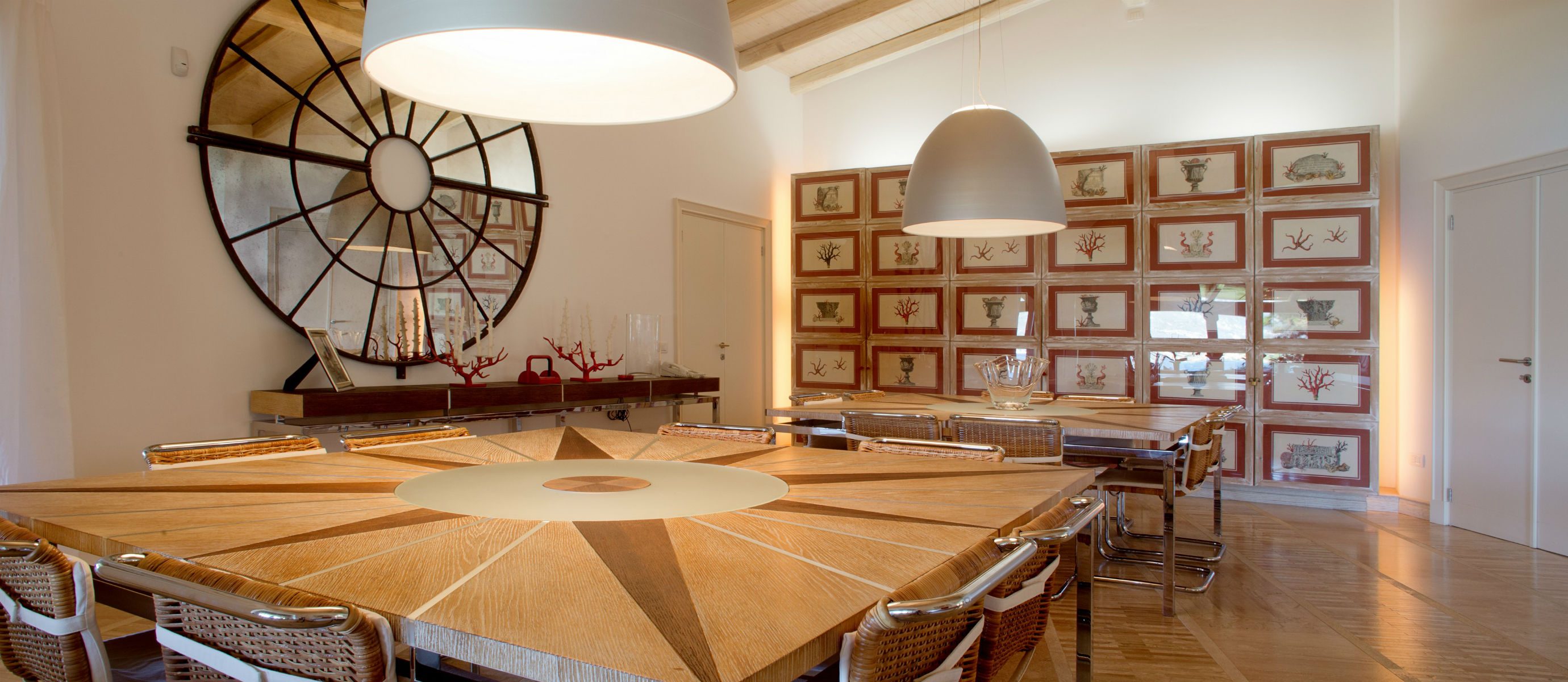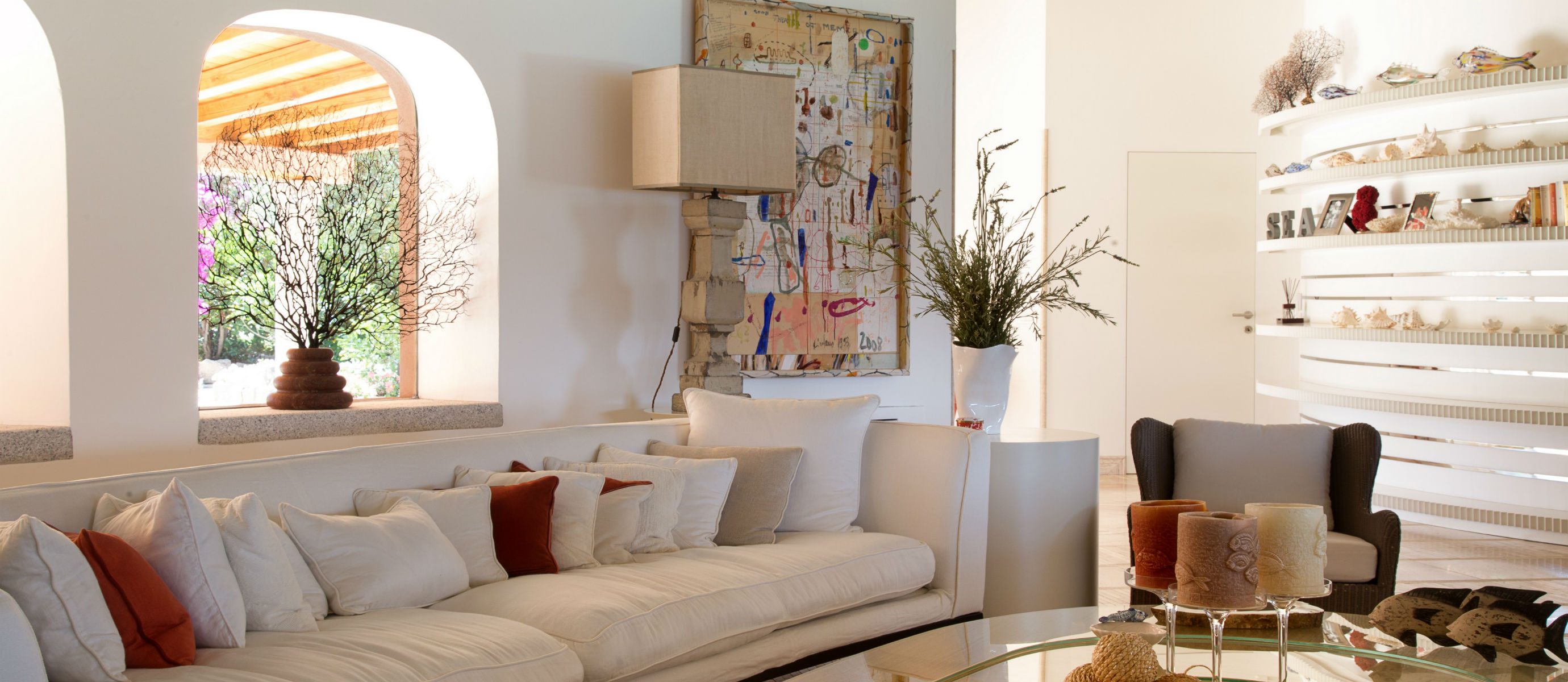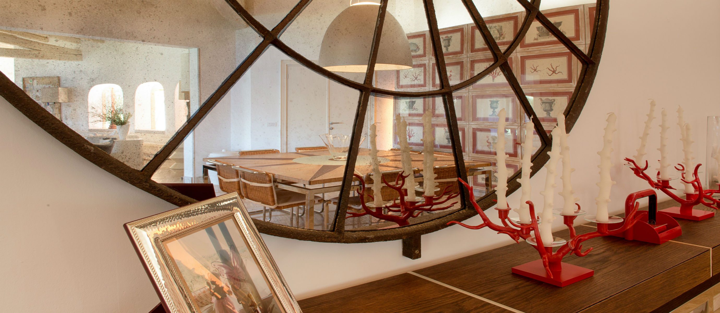 Previously owned by Shirley Bassey, it is furnished with a mixture of modern taste and Sardinian spirit. The granite and Orosei stone, crystal, resin and metal give aperfect balance between tradition and modernity.