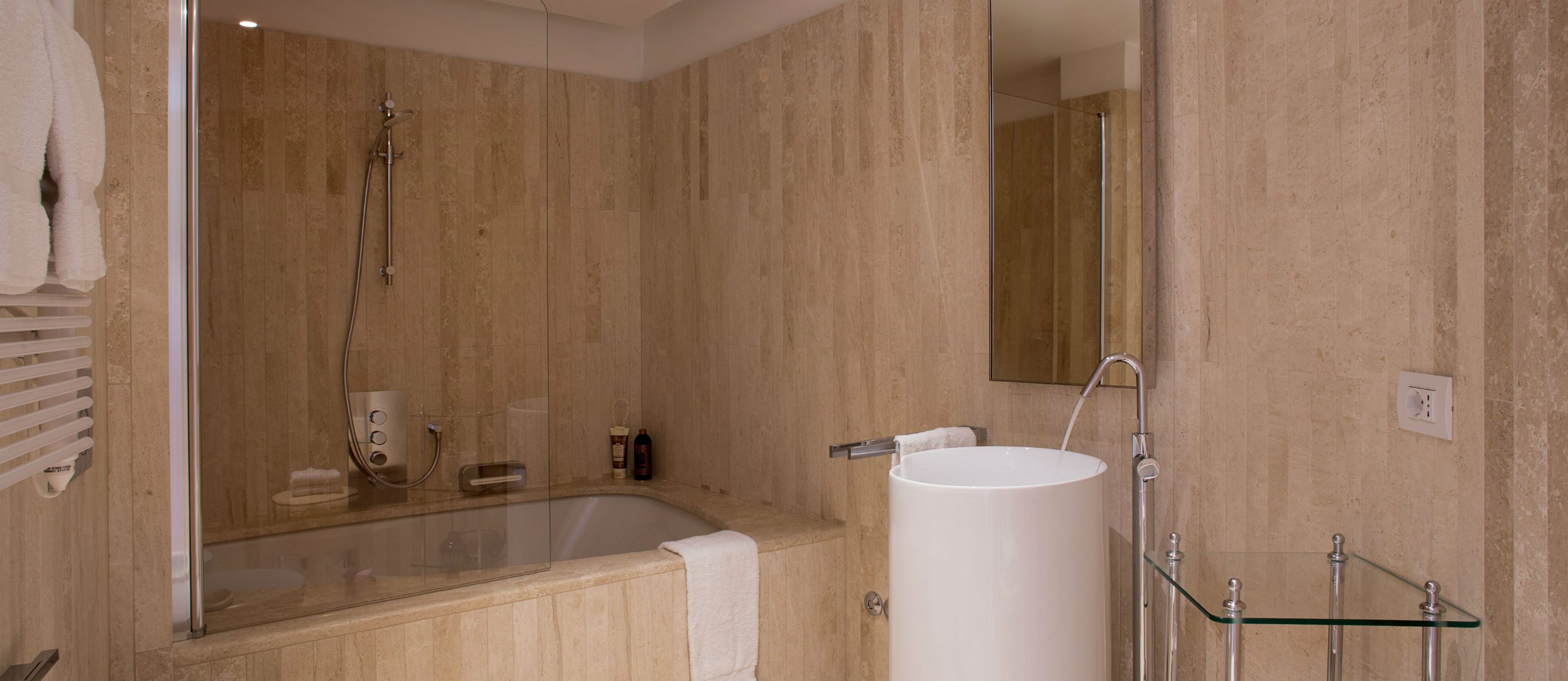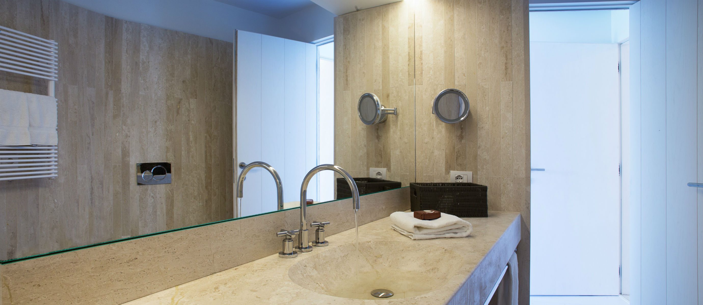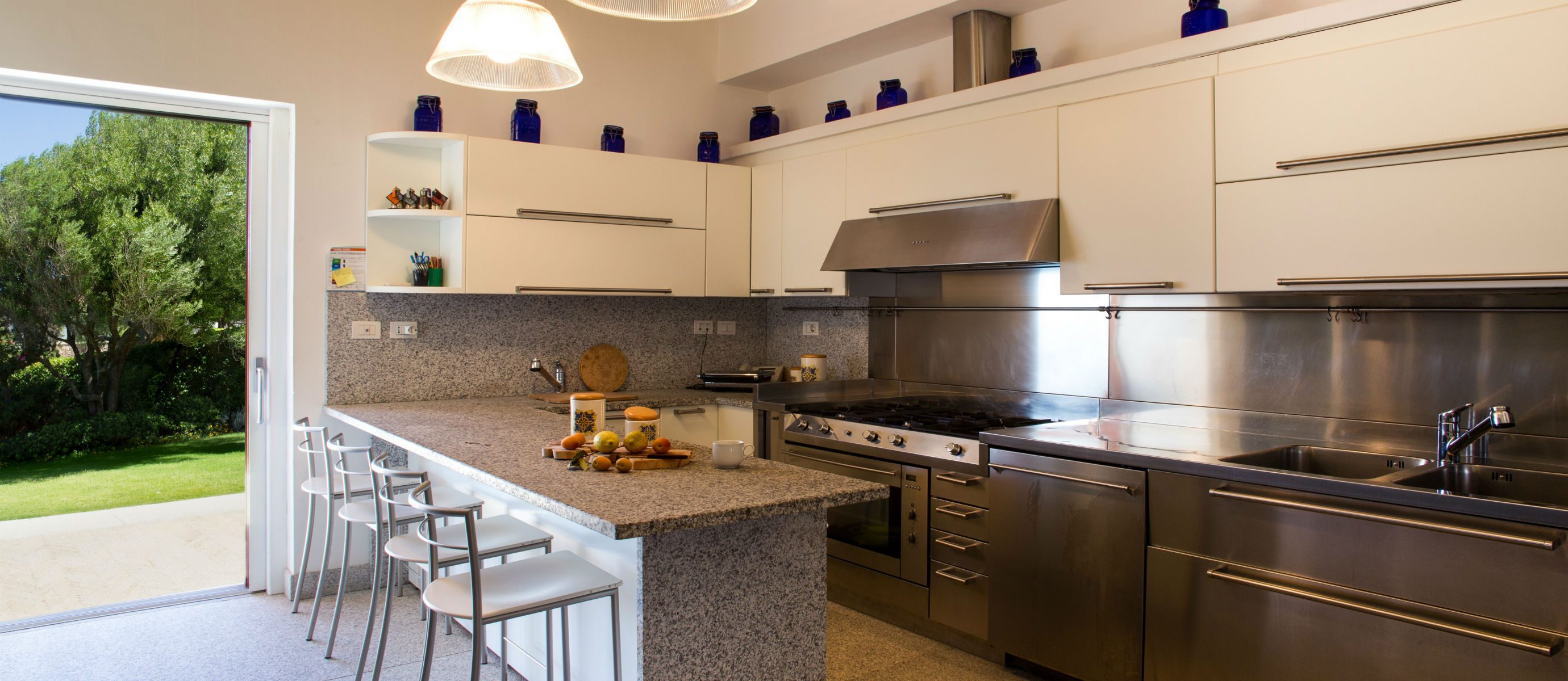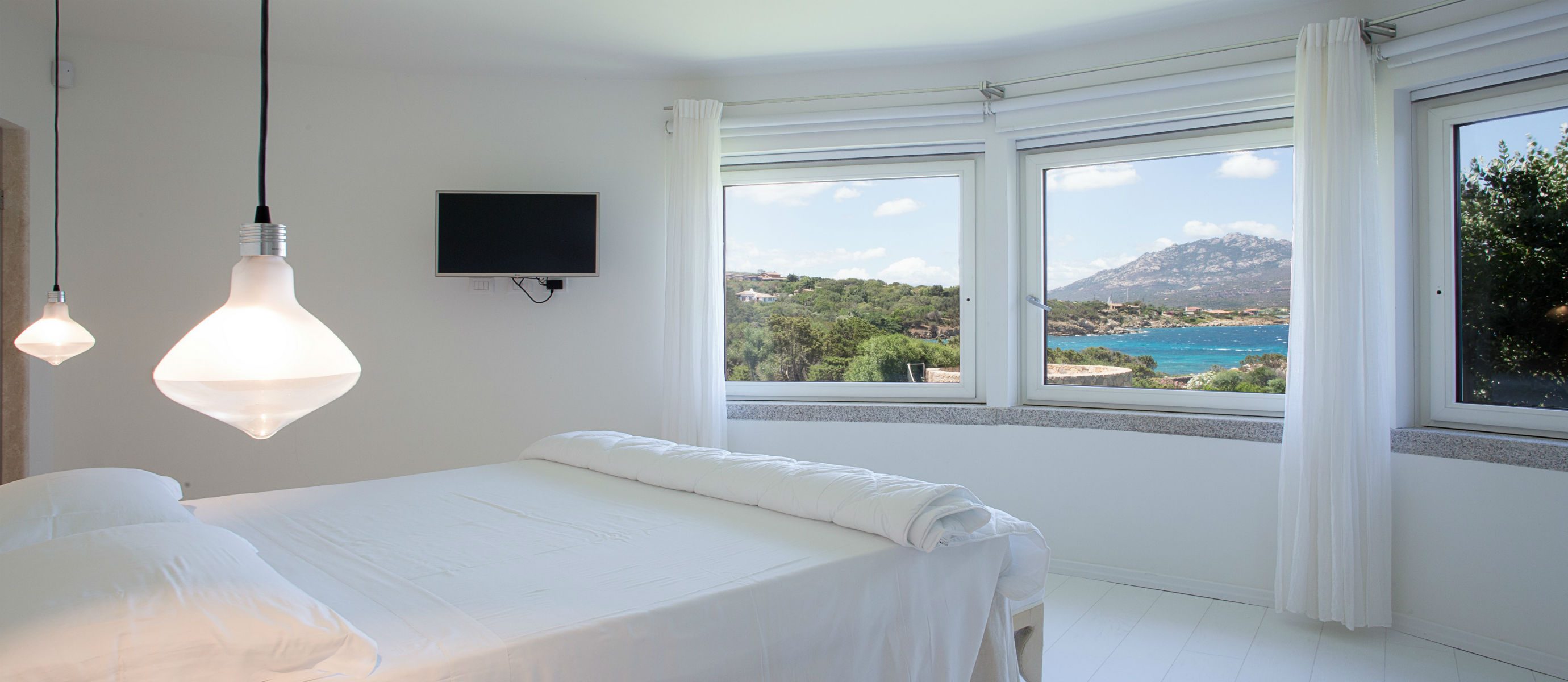 Previously owned by Shirley Bassey, it is furnished with a mixture of modern taste and Sardinian spirit. The granite and Orosei stone, crystal, resin and metal give aperfect balance between tradition and modernity.