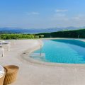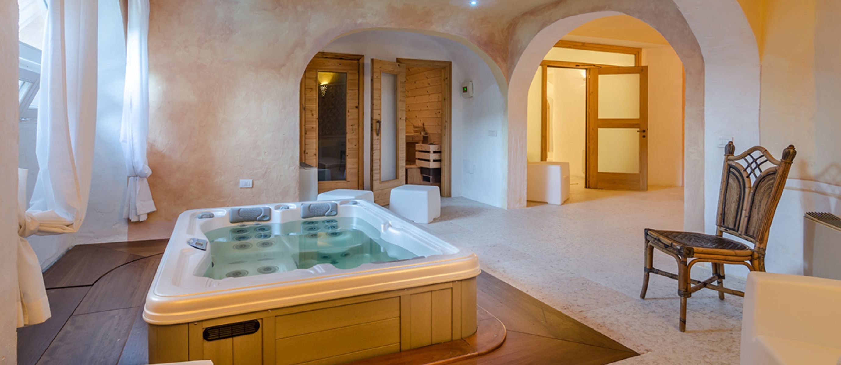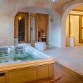 On the main level, there are five suites, each with a private bathroom, a spacious living room with fireplace and dining room, and an adjoining terrace, elegantly designed as an outdoor living and dining room.