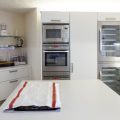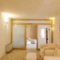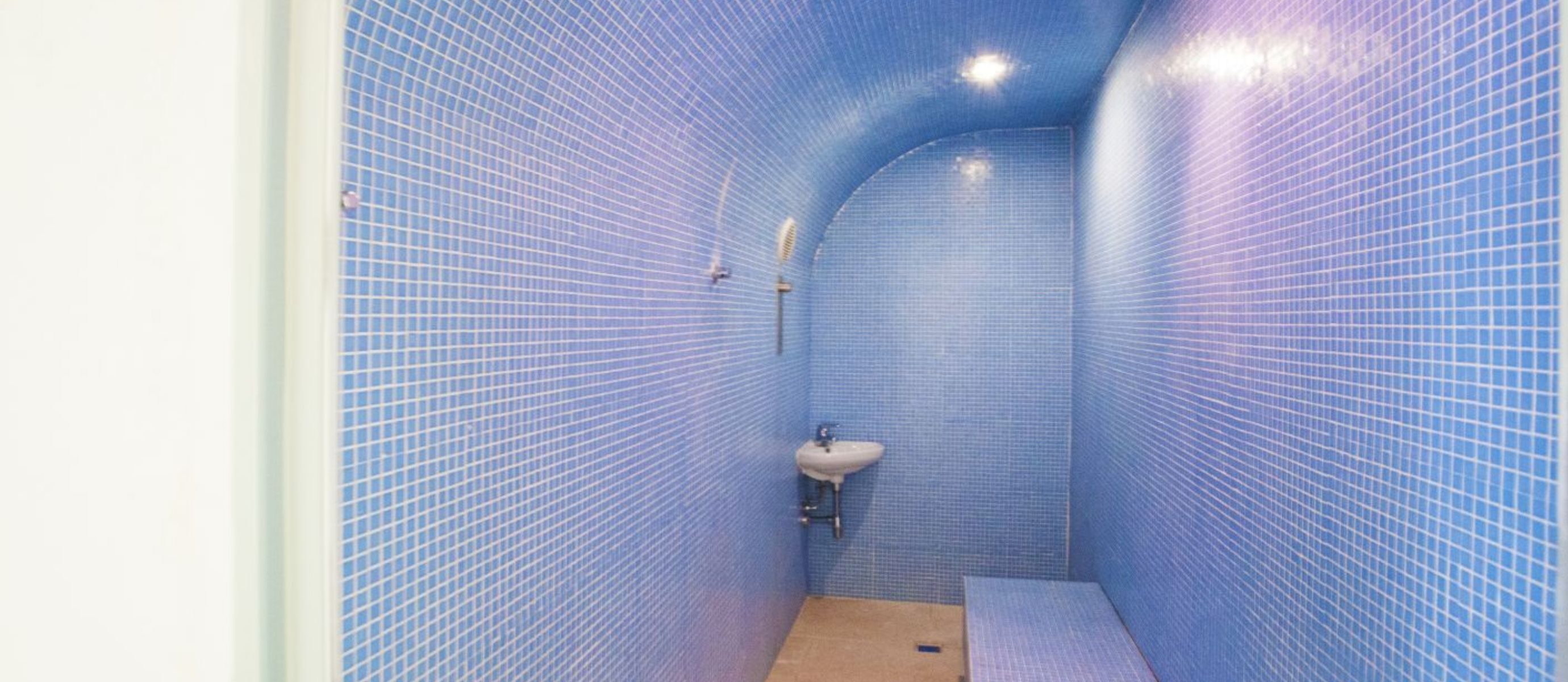 On the ground level, there is a large hall that can be furnished as a living room, a fitness area with a panoramic window facing the sea, a Turkish bath, sauna, jacuzzi for 3 people, a relaxation area, a bathroom and two small bedrooms with private bathroom for service staff and laundry room.