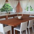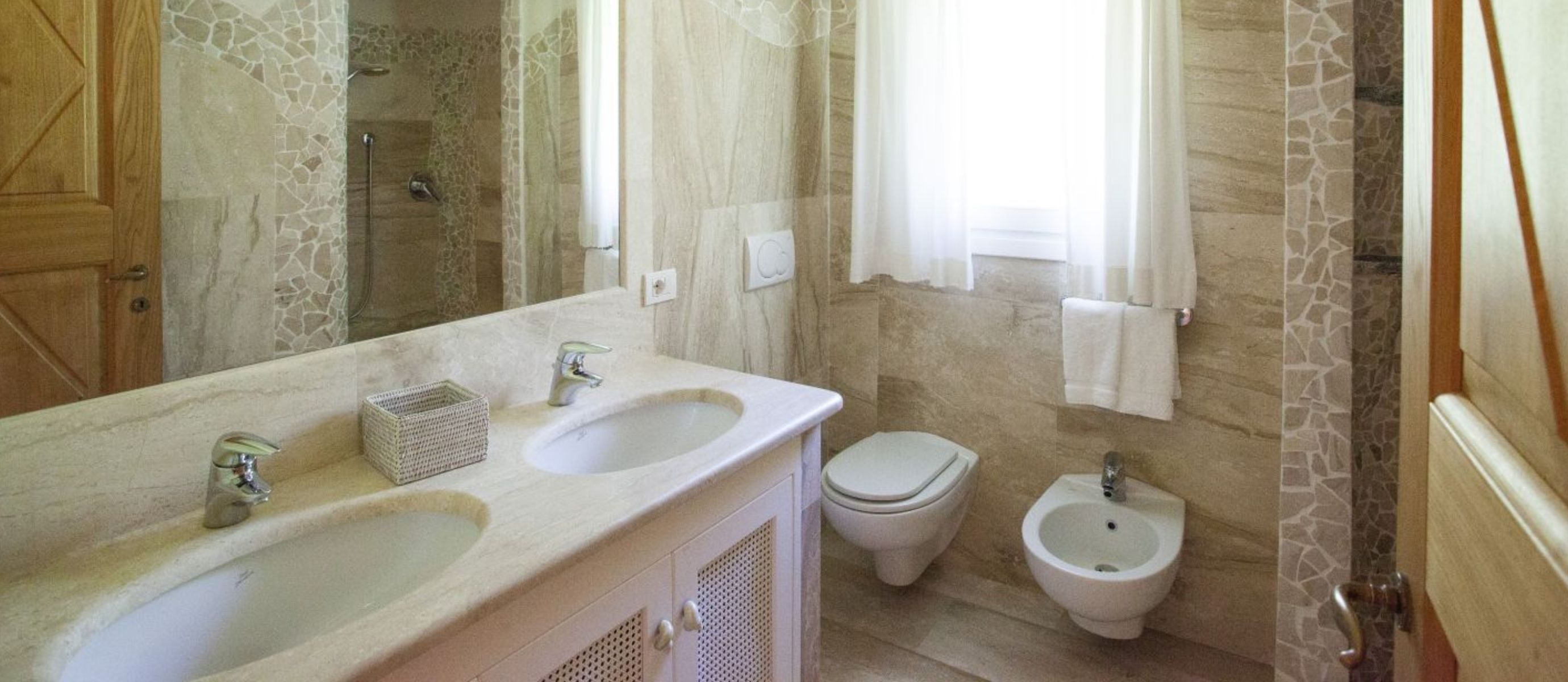 The villa is luxuriously furnished and has been built using fine local materials. Orosei marble has been used for the flooring of the entire property, while Sardinian granite is featured in some details of the facade along with juniper wood.