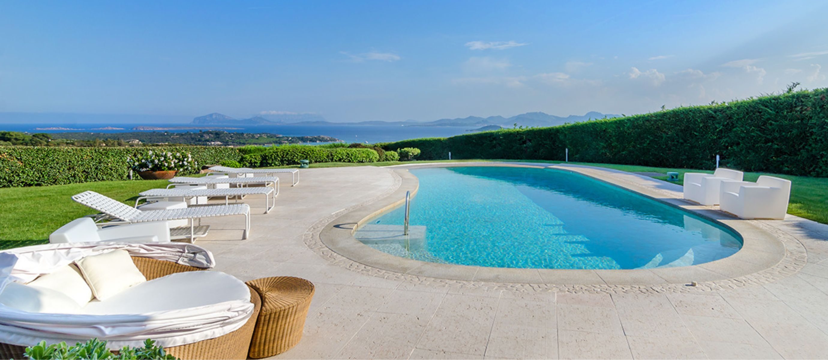This luxury property close to Cala di Volpe, in Porto Cervo, on the northeast coast of Sardinia, offers a breathtaking view.