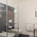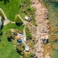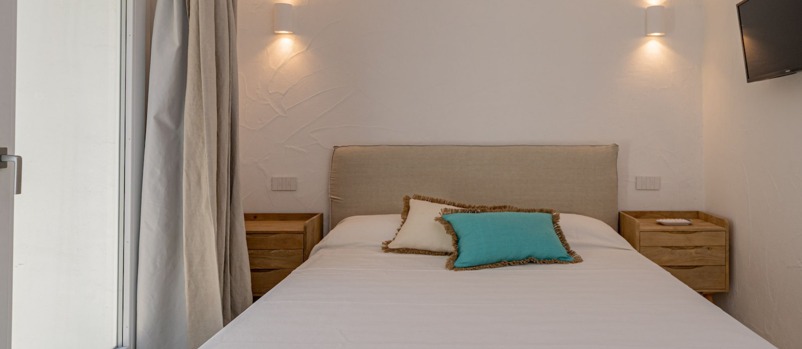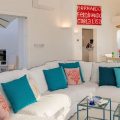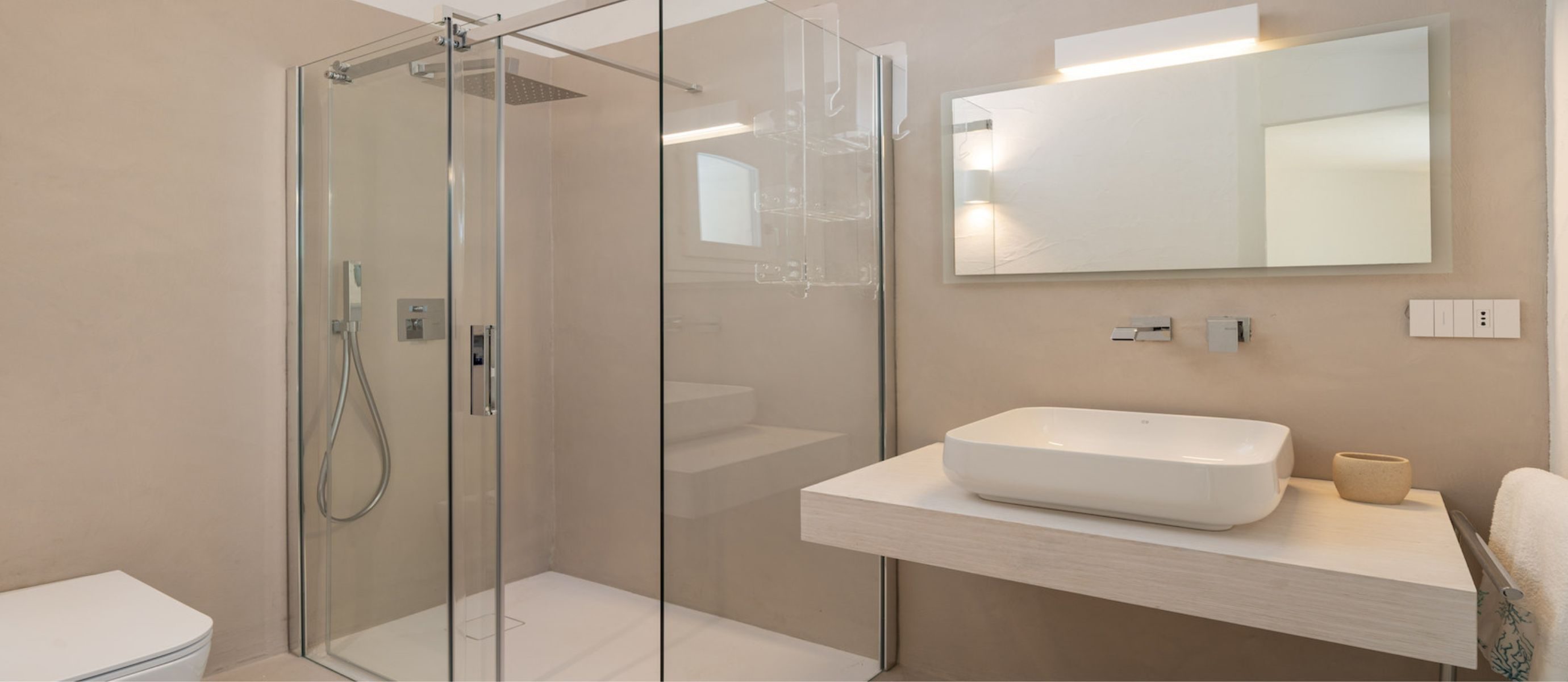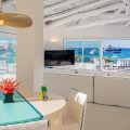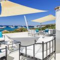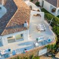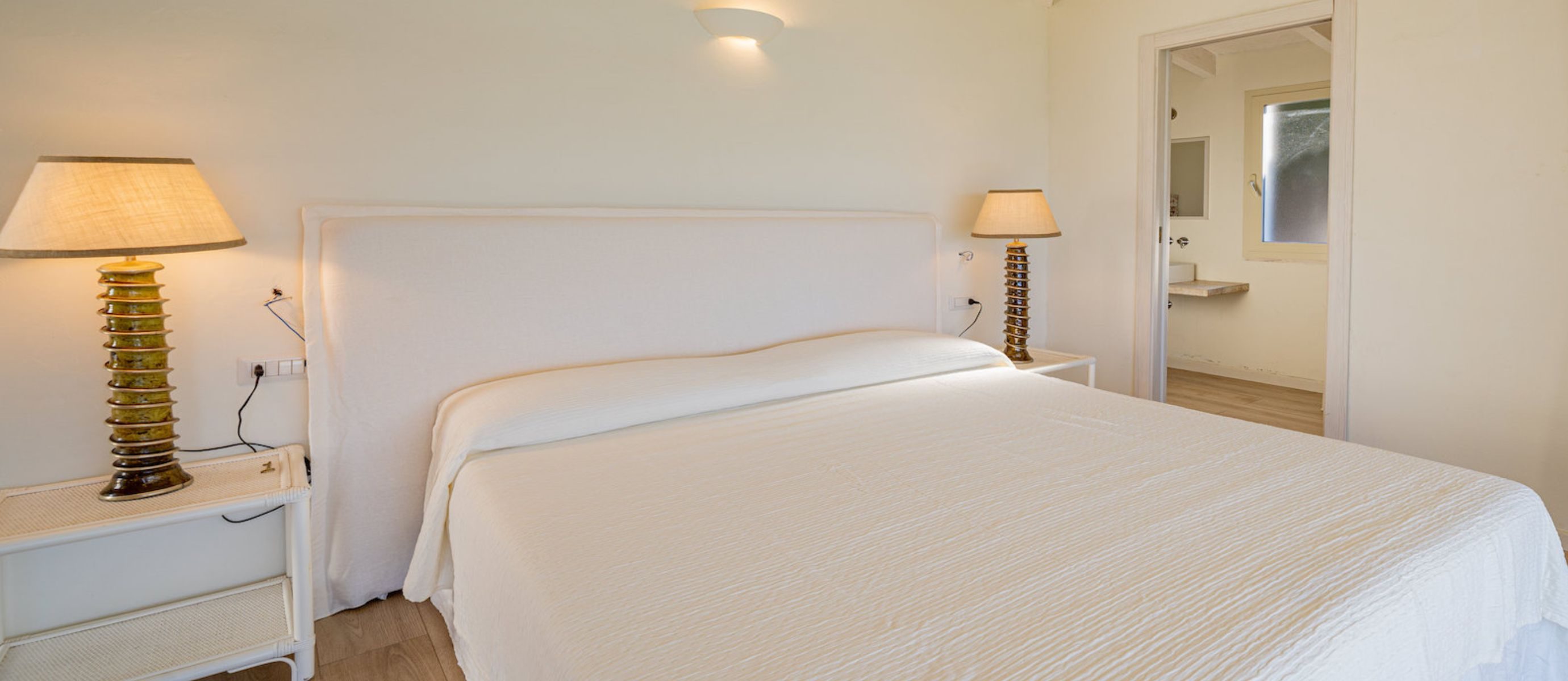 Inside, airy, light-filled interiors flow seamlessly from a spacious living room to an open-plan kitchen and dining area, designed for both style and ease. The main house features six refined bedrooms – three doubles and one with a French bed – each with its own sleek en-suite bathroom, plus an additional guest bath. Two of the bedrooms are located in a separate wing with independent access, offering uninterrupted sea views and an added layer of privacy.