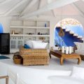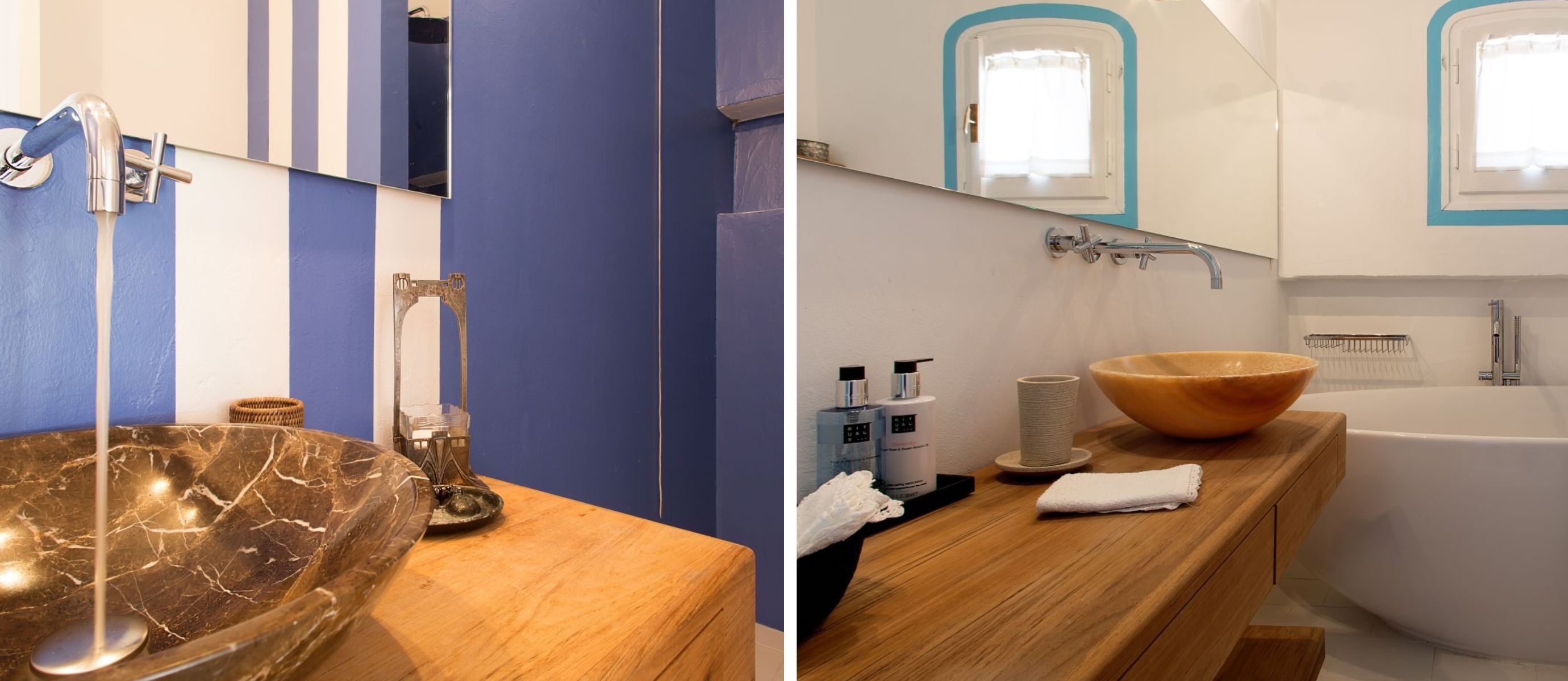 There are 4 bedrooms for guests (including a master with a living room) and one service bedroom for staff, with a maximum occupancy of 10 people. All the bedrooms have a private bathroom.
