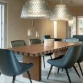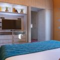 The villa consists of four independent buildings. The main body of the villa includes the living area, the kitchen and two master bedrooms, one of which has direct access to the terrace. The other independent structures host a master bedroom, two single bedrooms and a fitness room overlooking the swimming pool. There are a total of six bathrooms.