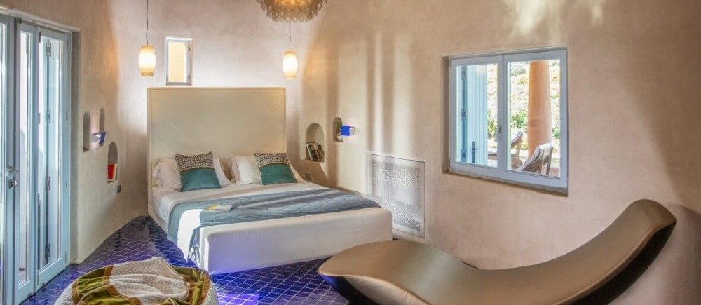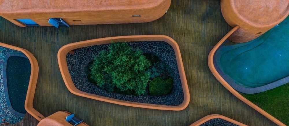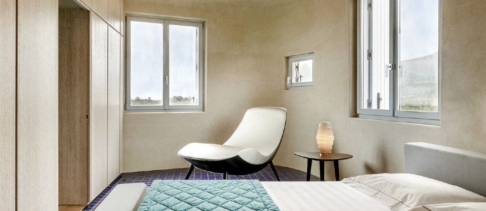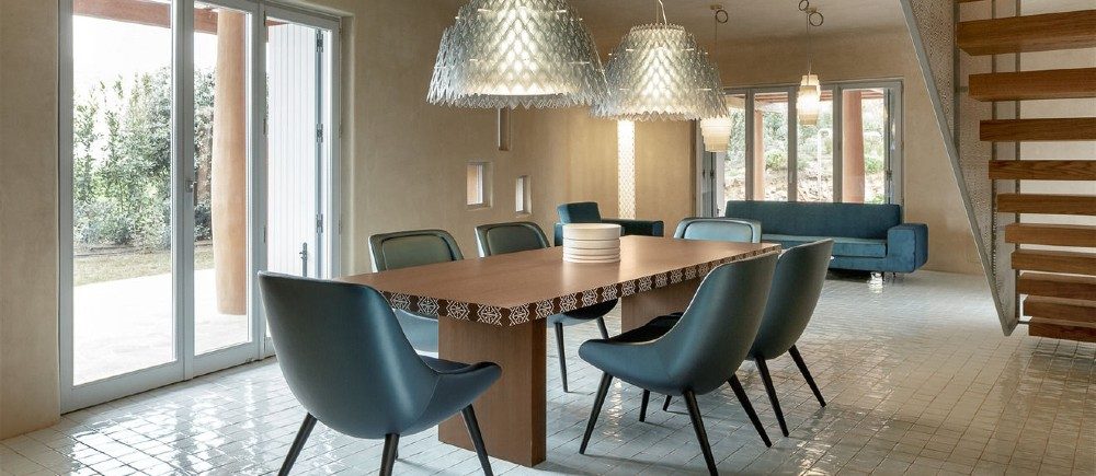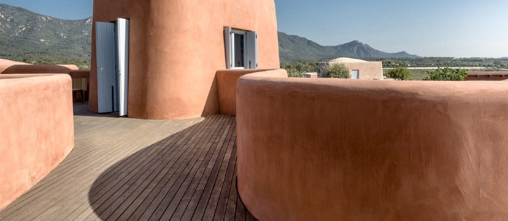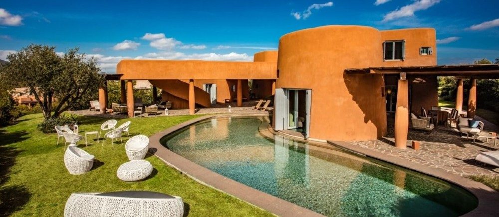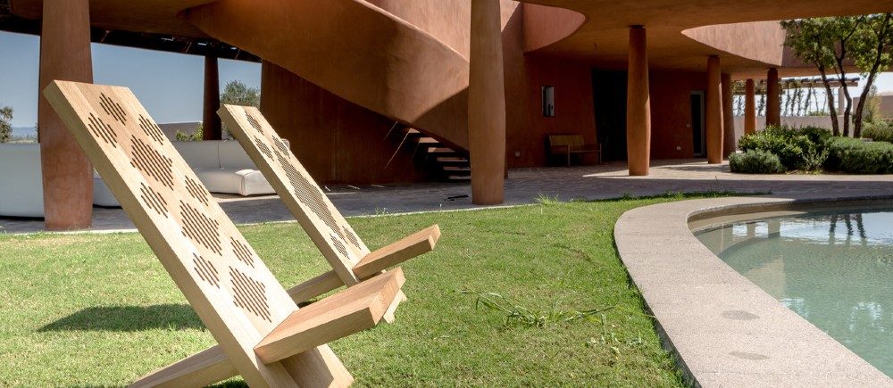 The architect wanted to design an “inhabitable sculpture”, to recall the shapes of the wind and the colours of the Sardinian earth.