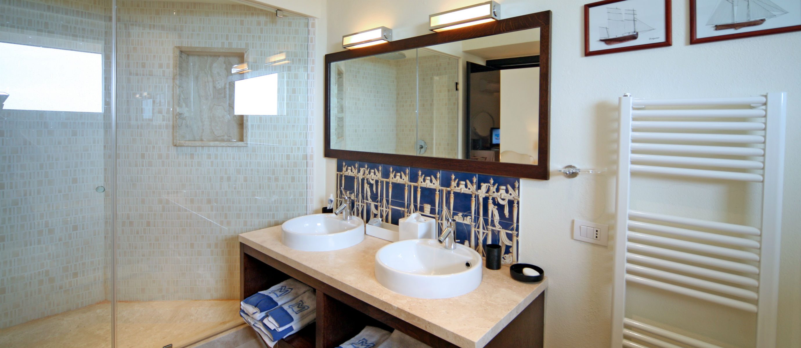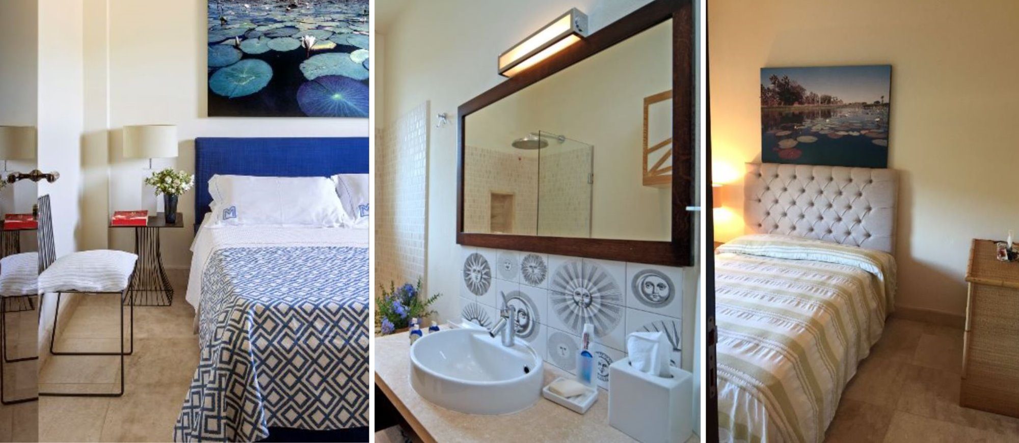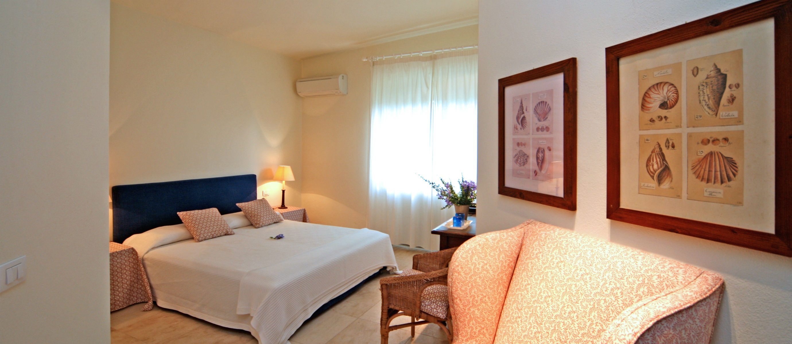 Double room with en–suite bathroom, garden and sea views